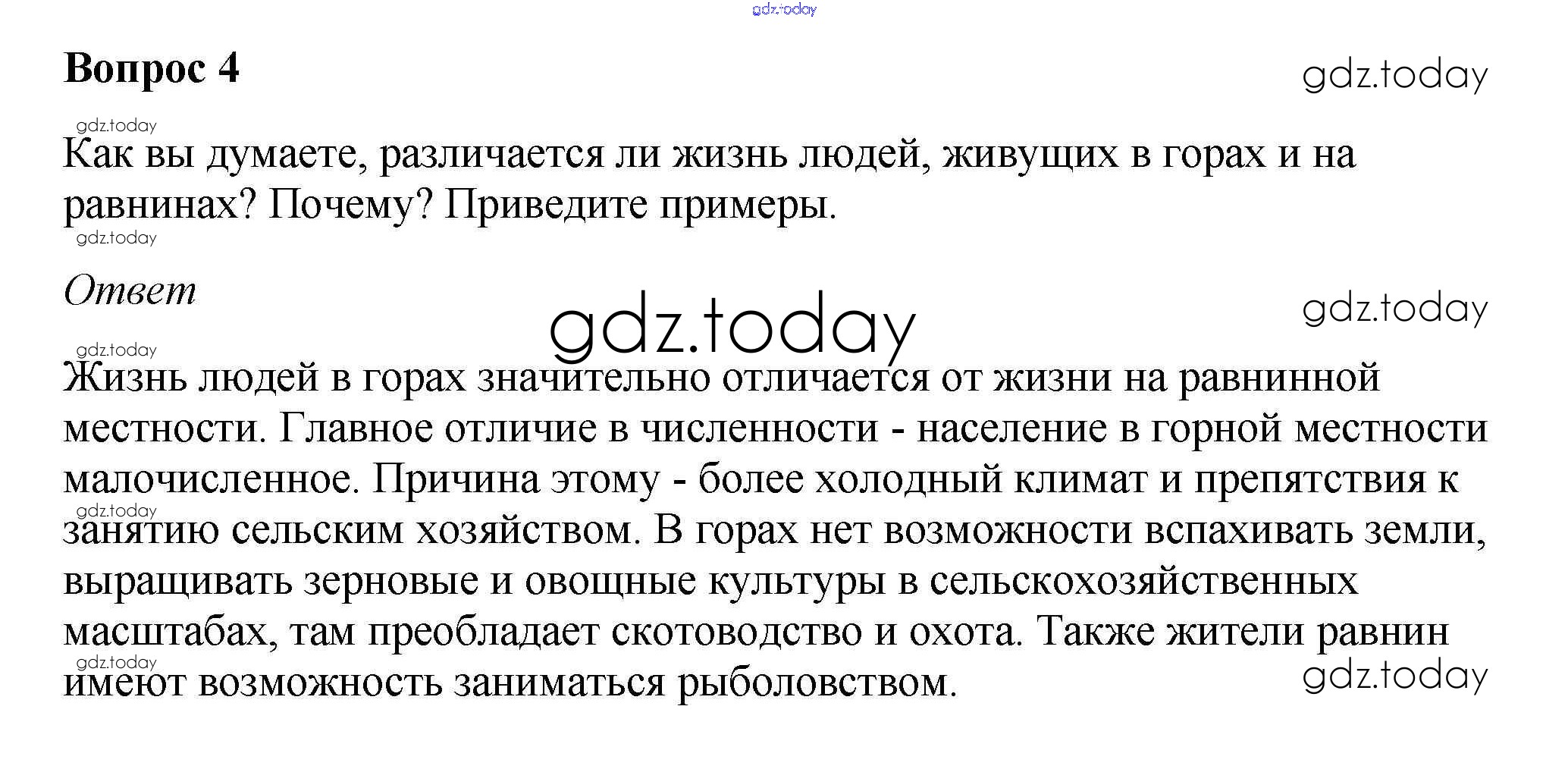На страницах сайта gdz.today вы найдете учебный и вспомогательный материал, направленный на улучшения знаний школьной программы. ГДЗ - онлайн мир знаний Вопросы и задания §21. Рельеф и его значение для человека 4 Учебнику по Географии для 5-6 класса Климанова, Климанов Дрофа Вертикаль 2017