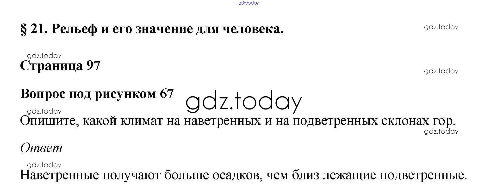 На страницах сайта gdz.today вы найдете учебный и вспомогательный материал, направленный на улучшения знаний школьной программы. ГДЗ - онлайн мир знаний Вопросы к рисункам §21. Рельеф и его значение для человека рис. 67 Учебнику по Географии для 5-6 класса Климанова, Климанов Дрофа Вертикаль 2017