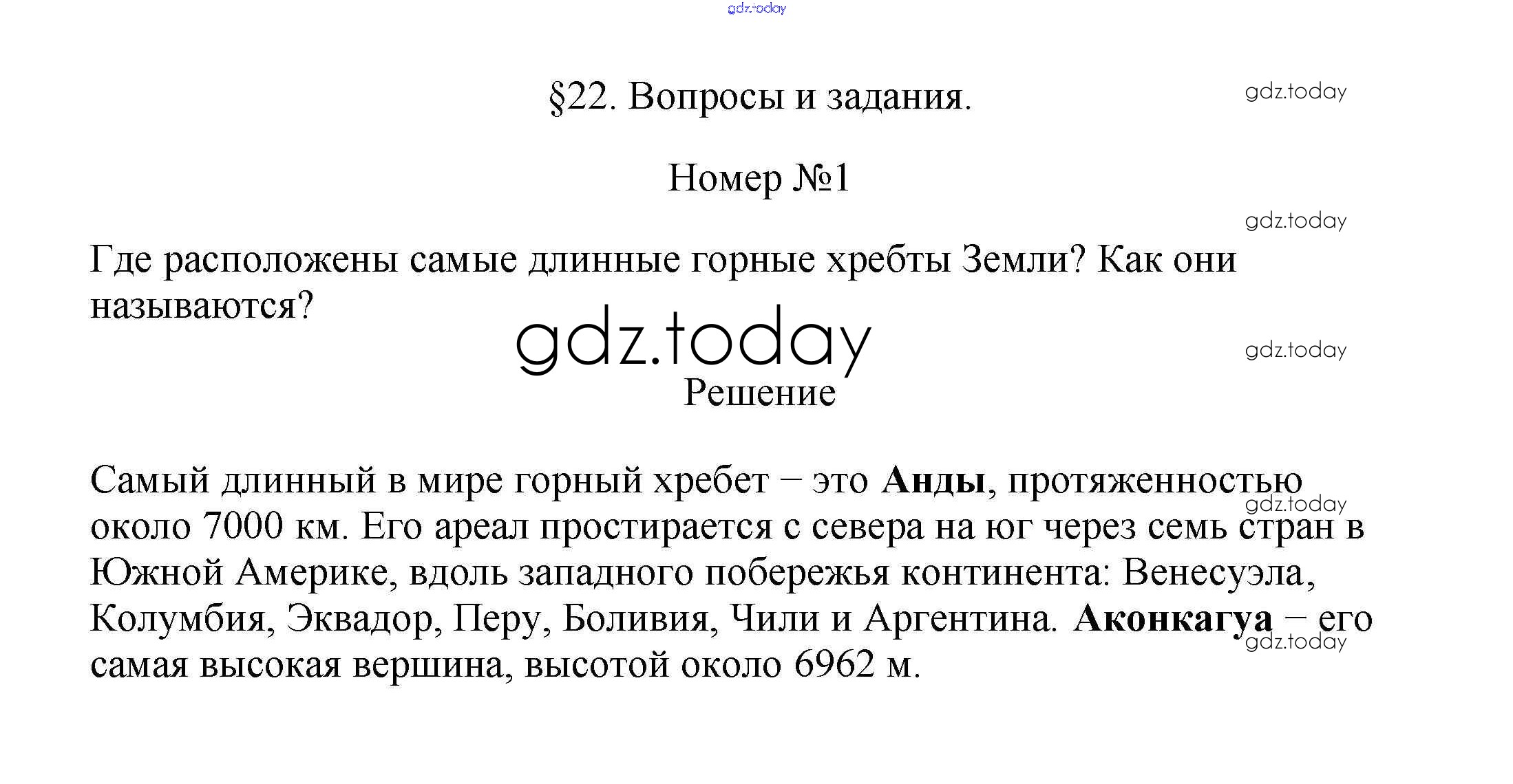 На страницах сайта gdz.today вы найдете учебный и вспомогательный материал, направленный на улучшения знаний школьной программы. ГДЗ - онлайн мир знаний Вопросы и задания §22. Основные формы рельефа Земли 1 Учебнику по Географии для 5-6 класса Климанова, Климанов Дрофа Вертикаль 2017