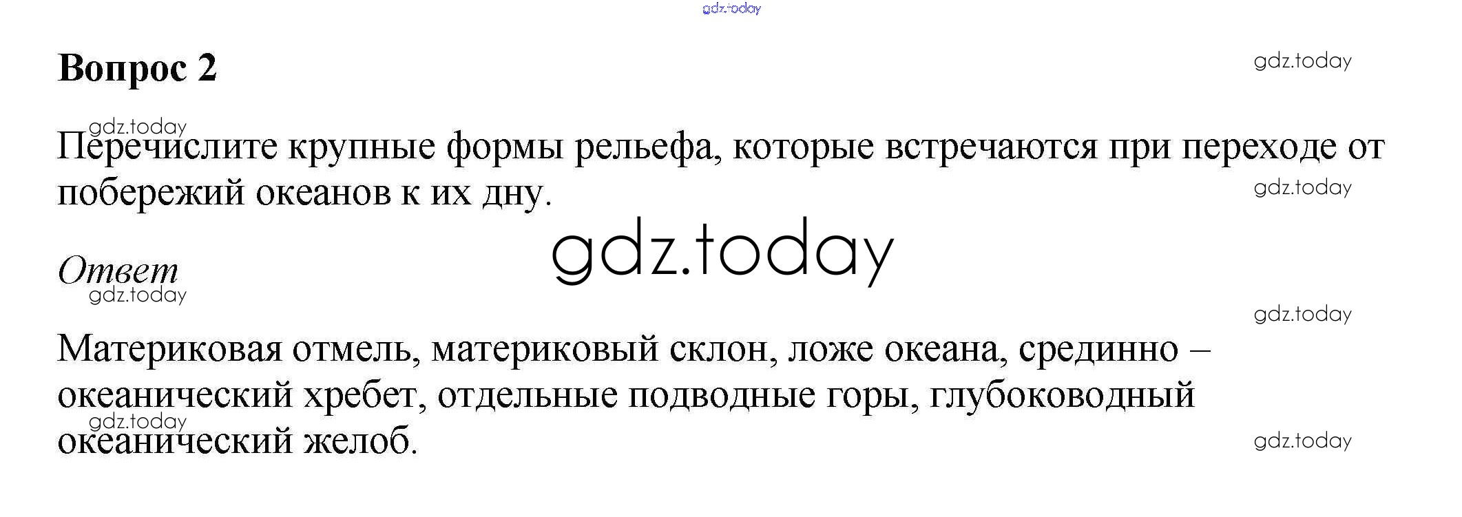 На страницах сайта gdz.today вы найдете учебный и вспомогательный материал, направленный на улучшения знаний школьной программы. ГДЗ - онлайн мир знаний Вопросы и задания §22. Основные формы рельефа Земли 2 Учебнику по Географии для 5-6 класса Климанова, Климанов Дрофа Вертикаль 2017