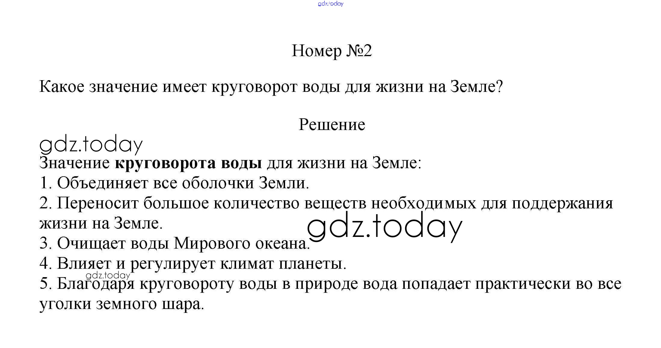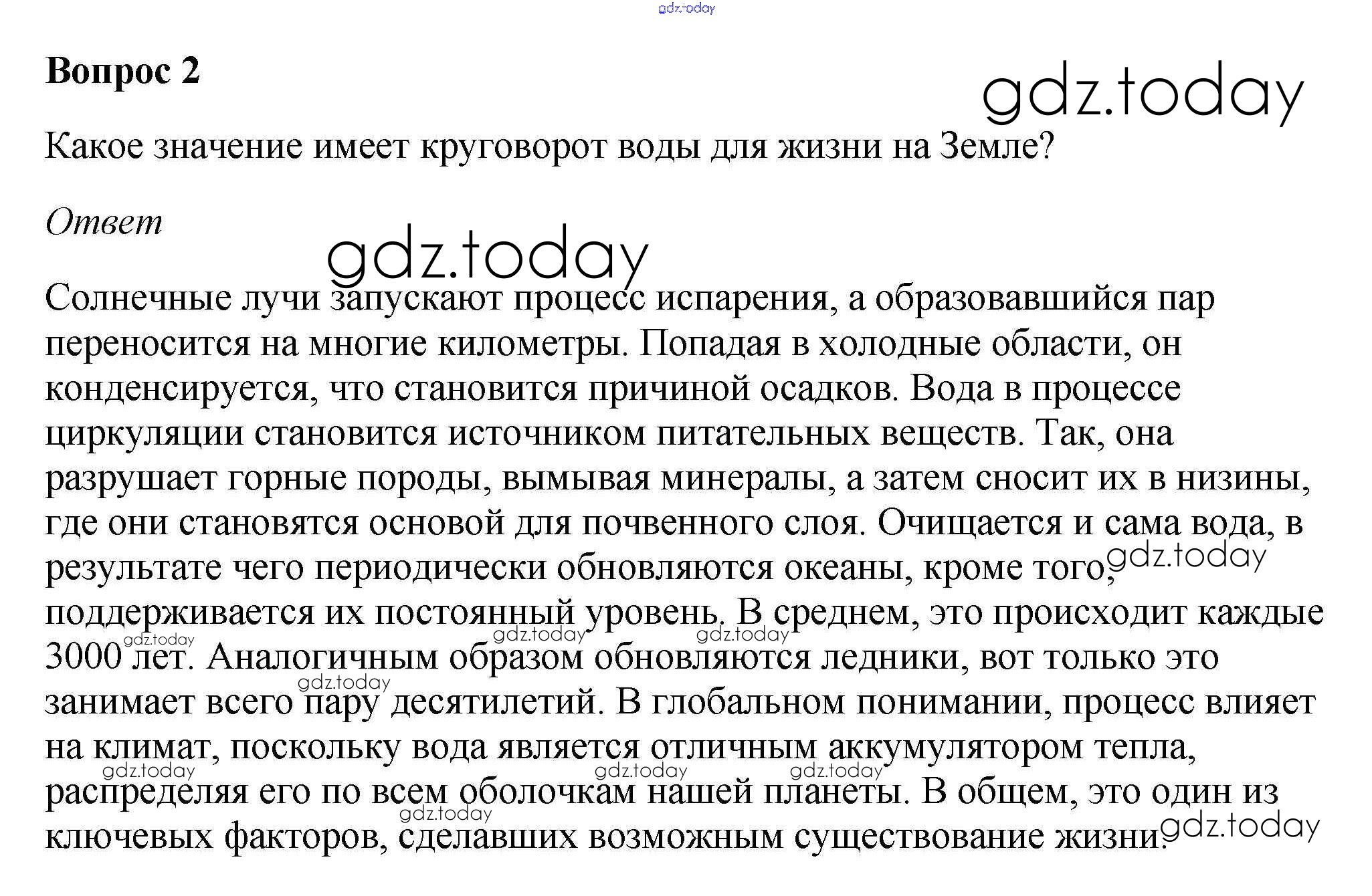 На страницах сайта gdz.today вы найдете учебный и вспомогательный материал, направленный на улучшения знаний школьной программы. ГДЗ - онлайн мир знаний Вопросы и задания §23. Мировой круговорот воды 2 Учебнику по Географии для 5-6 класса Климанова, Климанов Дрофа Вертикаль 2017