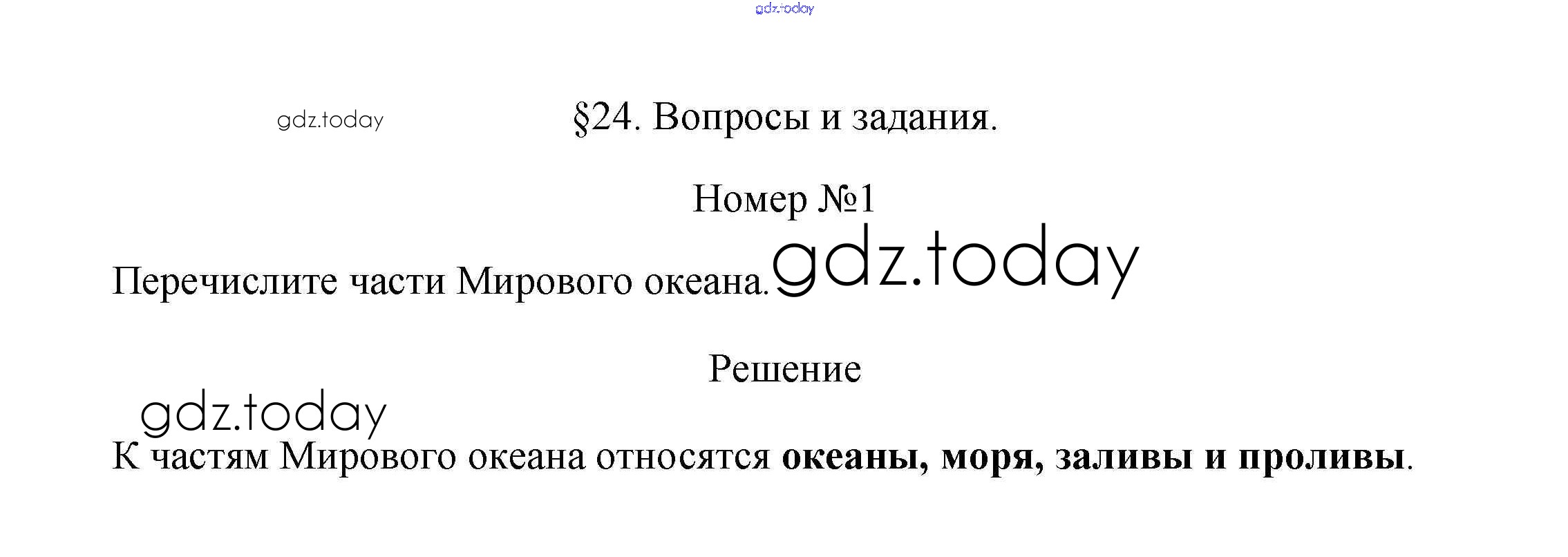 На страницах сайта gdz.today вы найдете учебный и вспомогательный материал, направленный на улучшения знаний школьной программы. ГДЗ - онлайн мир знаний Вопросы и задания §24. Мировой океан и его части 1 Учебнику по Географии для 5-6 класса Климанова, Климанов Дрофа Вертикаль 2017