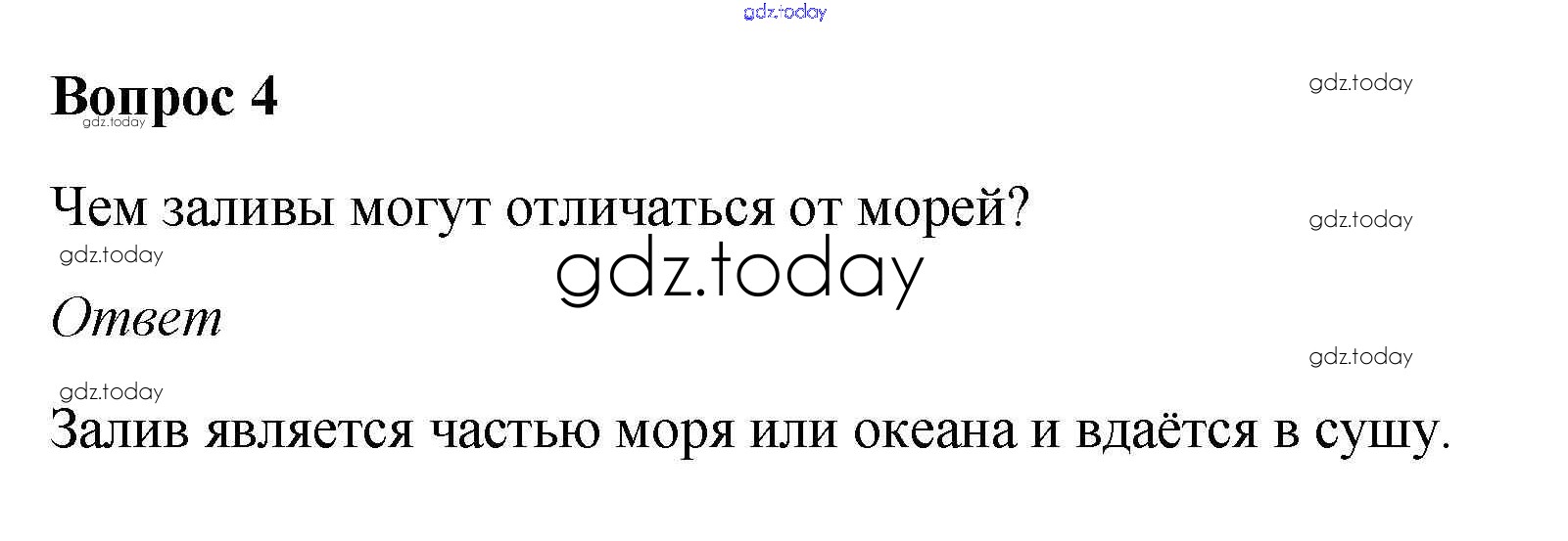 На страницах сайта gdz.today вы найдете учебный и вспомогательный материал, направленный на улучшения знаний школьной программы. ГДЗ - онлайн мир знаний Вопросы и задания §24. Мировой океан и его части 4 Учебнику по Географии для 5-6 класса Климанова, Климанов Дрофа Вертикаль 2017