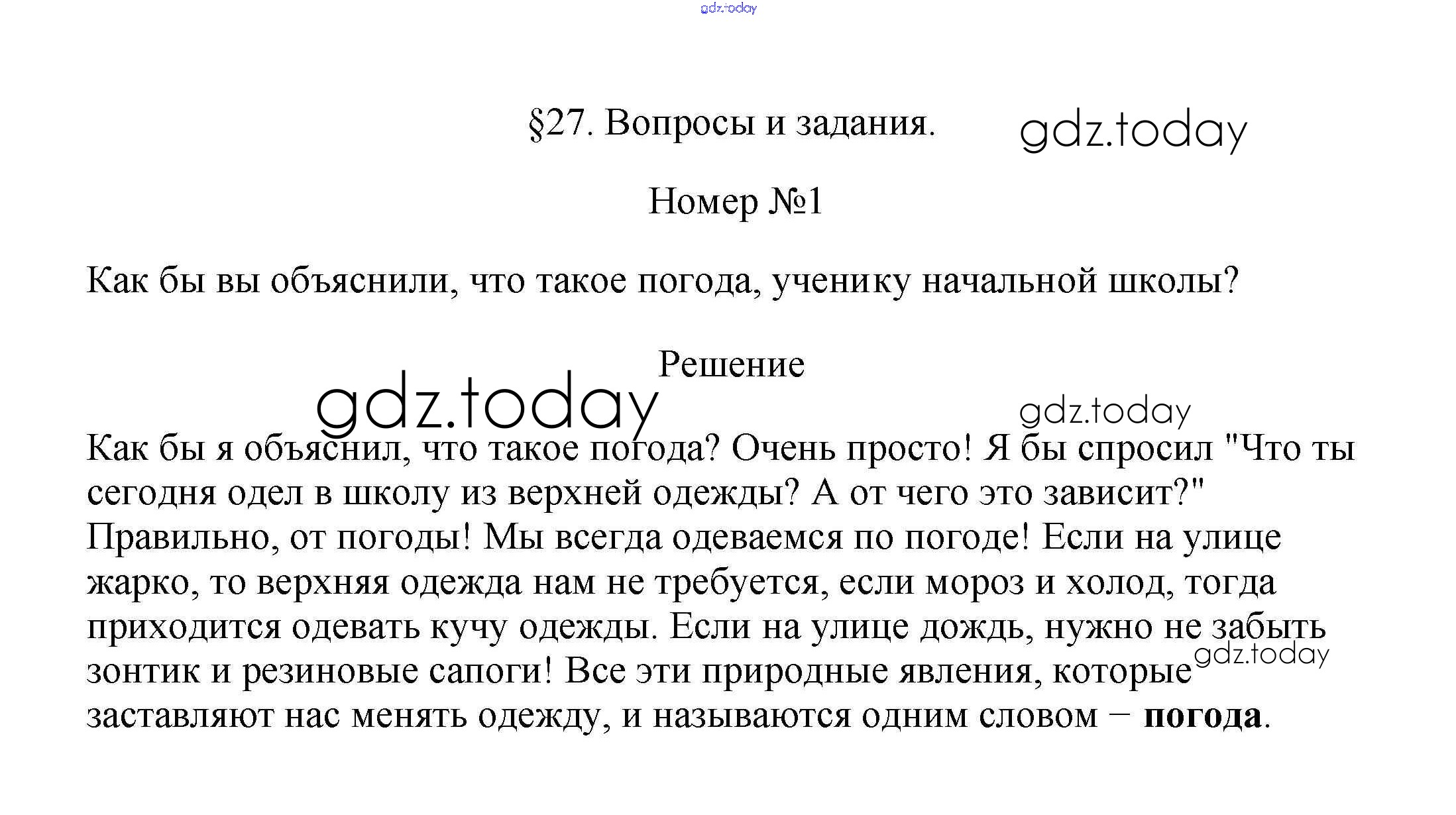 На страницах сайта gdz.today вы найдете учебный и вспомогательный материал, направленный на улучшения знаний школьной программы. ГДЗ - онлайн мир знаний Вопросы и задания §27. Погода 1 Учебнику по Географии для 5-6 класса Климанова, Климанов Дрофа Вертикаль 2017