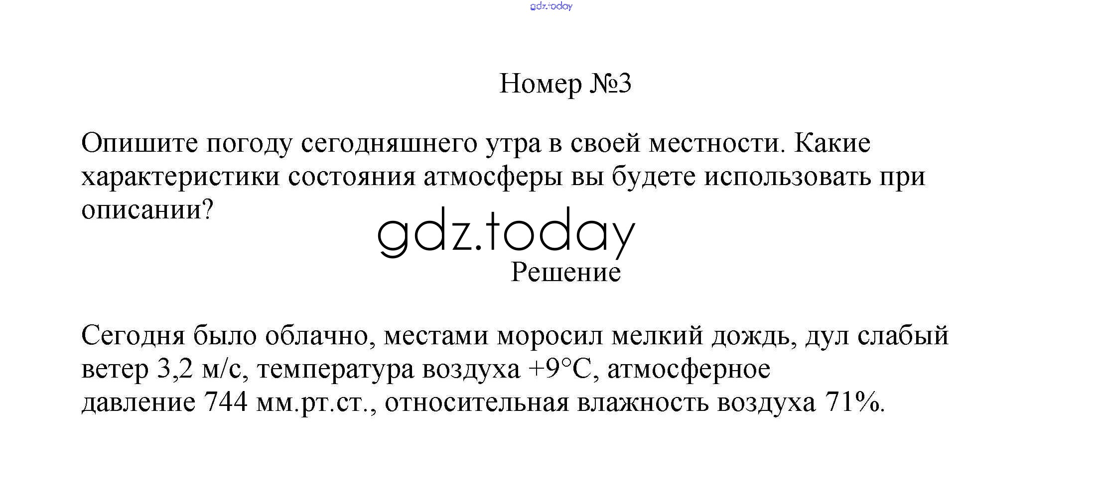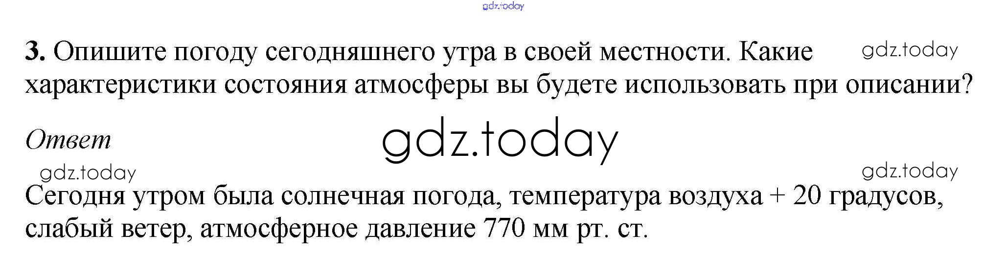 На страницах сайта gdz.today вы найдете учебный и вспомогательный материал, направленный на улучшения знаний школьной программы. ГДЗ - онлайн мир знаний Задания §28. Урок-практикум. Знакомство с метеорологическими приборами и наблюдение за погодой 3 Учебнику по Географии для 5-6 класса Климанова, Климанов Дрофа Вертикаль 2017