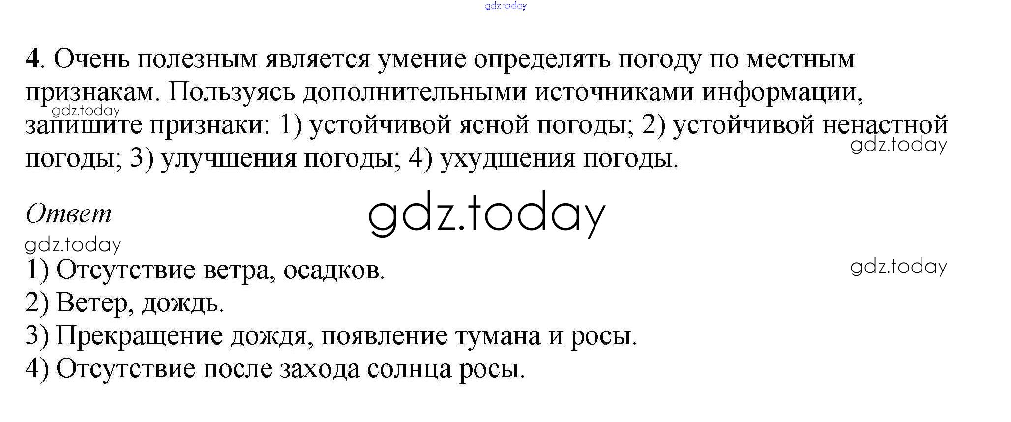 На страницах сайта gdz.today вы найдете учебный и вспомогательный материал, направленный на улучшения знаний школьной программы. ГДЗ - онлайн мир знаний Задания §28. Урок-практикум. Знакомство с метеорологическими приборами и наблюдение за погодой 4 Учебнику по Географии для 5-6 класса Климанова, Климанов Дрофа Вертикаль 2017