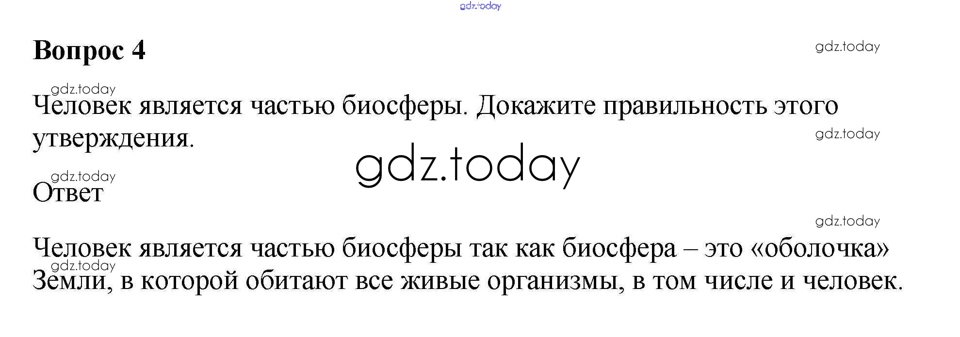 На страницах сайта gdz.today вы найдете учебный и вспомогательный материал, направленный на улучшения знаний школьной программы. ГДЗ - онлайн мир знаний Вопросы и задания §29. Биосфера — живая оболочка Земли 4 Учебнику по Географии для 5-6 класса Климанова, Климанов Дрофа Вертикаль 2017