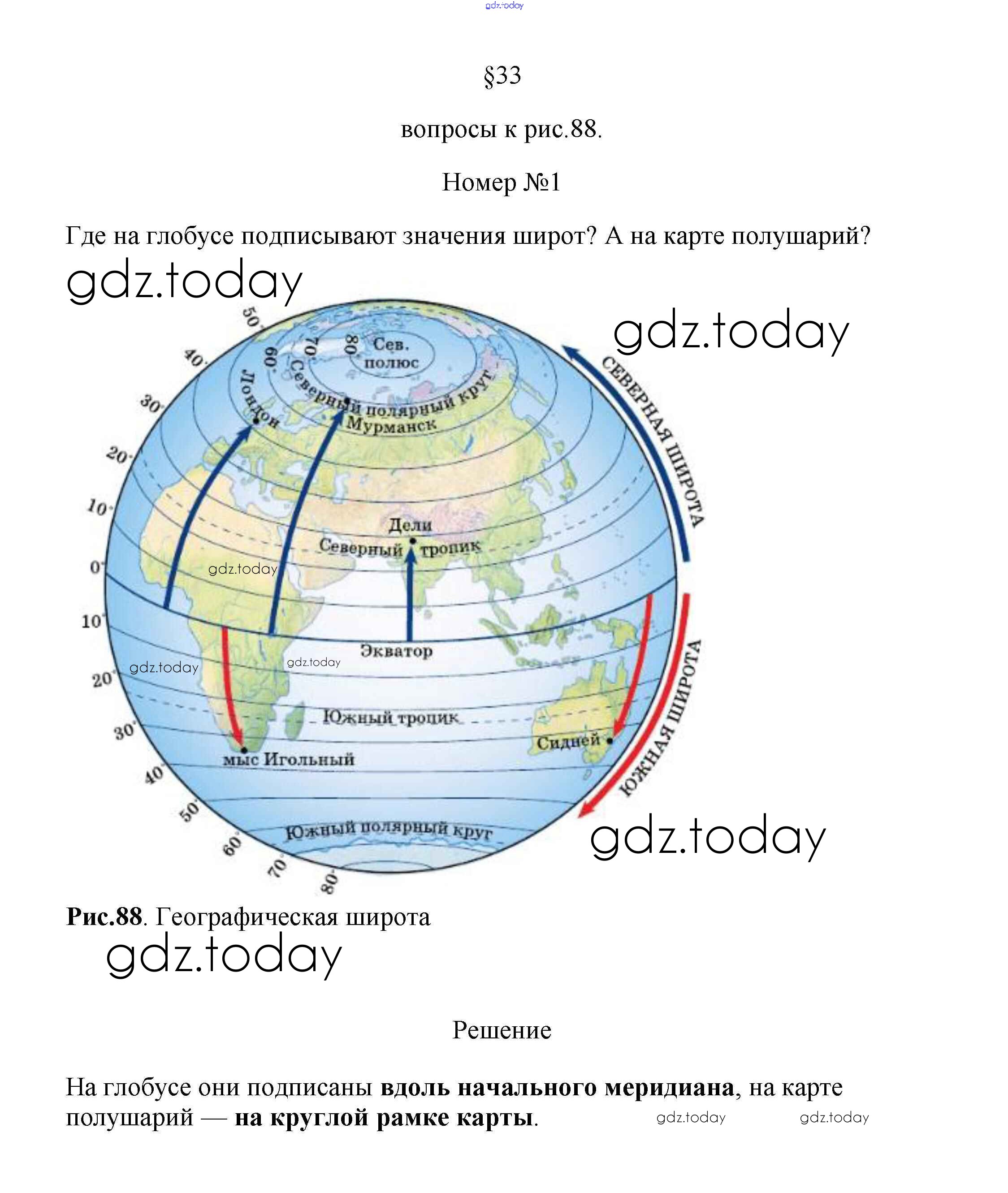 На страницах сайта gdz.today вы найдете учебный и вспомогательный материал, направленный на улучшения знаний школьной программы. ГДЗ - онлайн мир знаний Вопросы к рисункам §33. Географические координаты рис. 88 Учебнику по Географии для 5-6 класса Климанова, Климанов Дрофа Вертикаль 2017