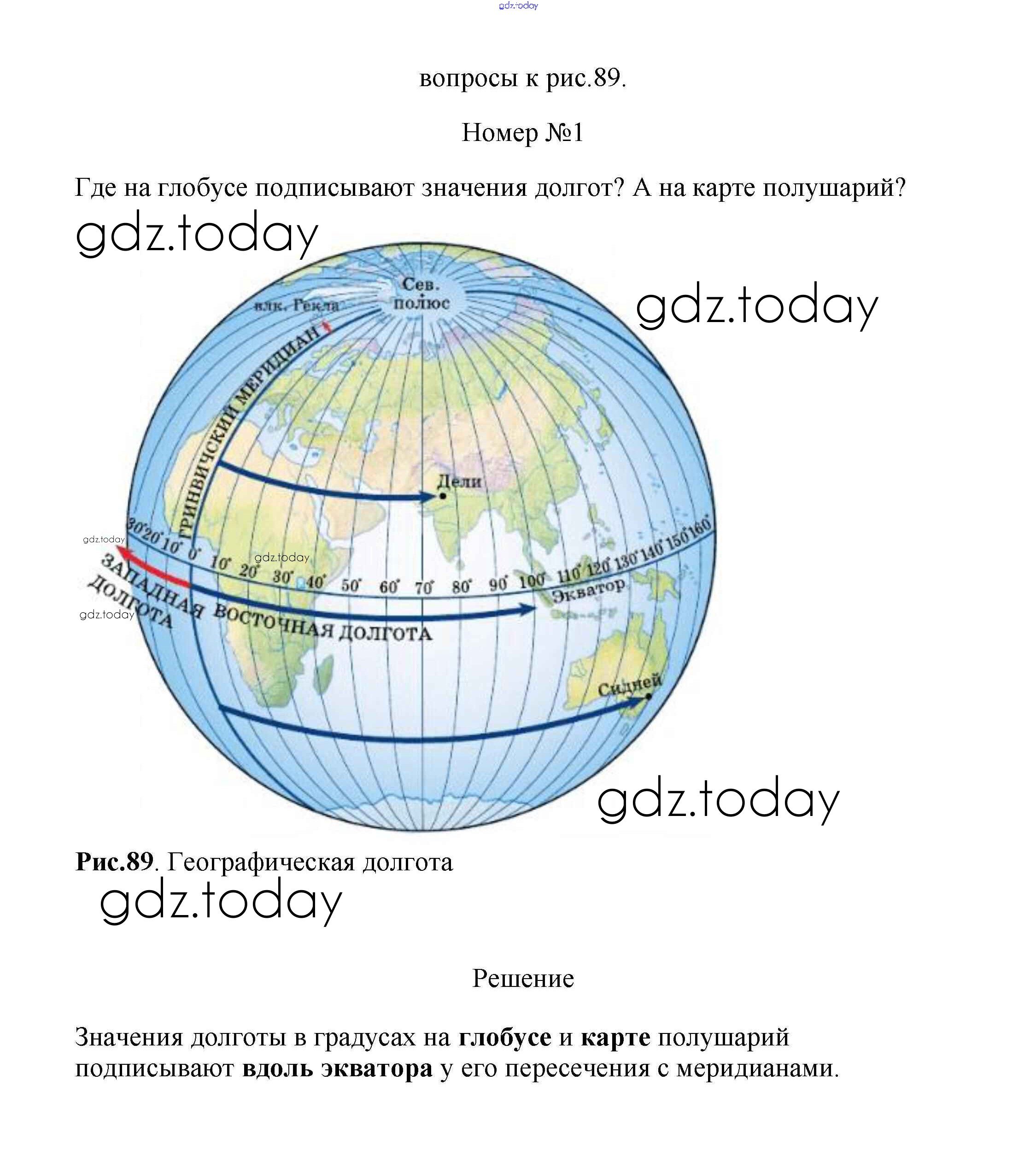 На страницах сайта gdz.today вы найдете учебный и вспомогательный материал, направленный на улучшения знаний школьной программы. ГДЗ - онлайн мир знаний Вопросы к рисункам §33. Географические координаты рис. 89 Учебнику по Географии для 5-6 класса Климанова, Климанов Дрофа Вертикаль 2017