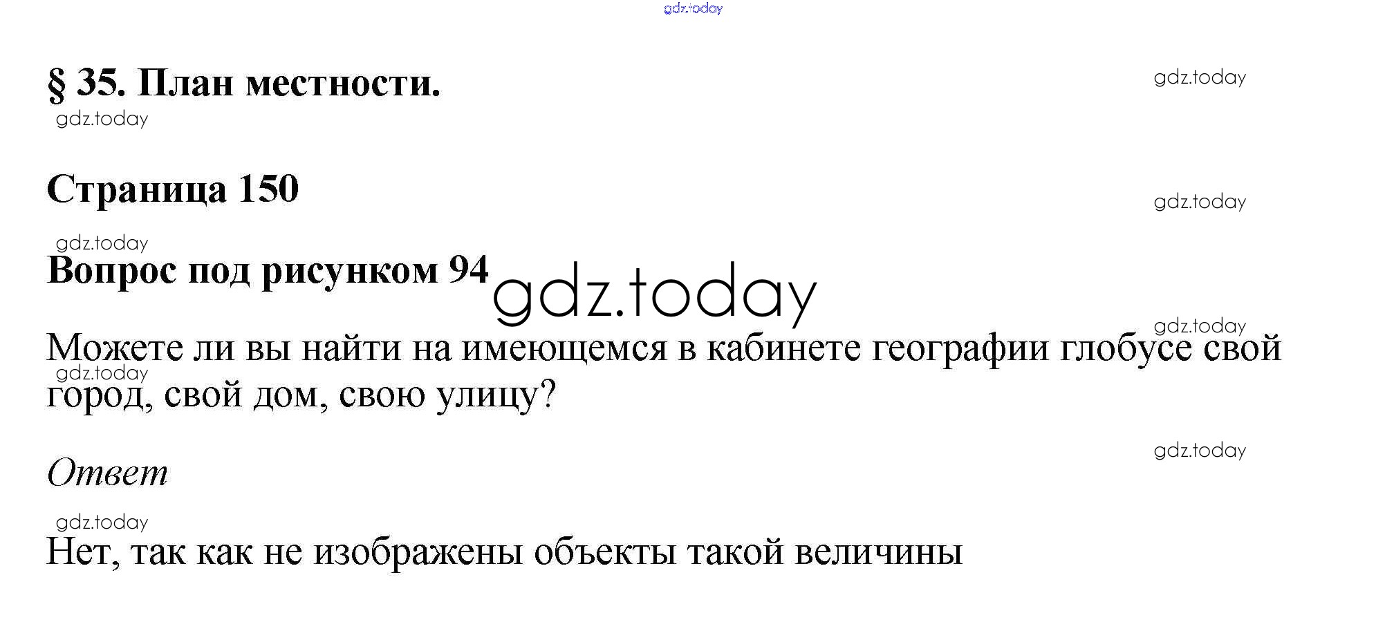 На страницах сайта gdz.today вы найдете учебный и вспомогательный материал, направленный на улучшения знаний школьной программы. ГДЗ - онлайн мир знаний Вопросы к рисункам §35. План местности рис. 94 Учебнику по Географии для 5-6 класса Климанова, Климанов Дрофа Вертикаль 2017