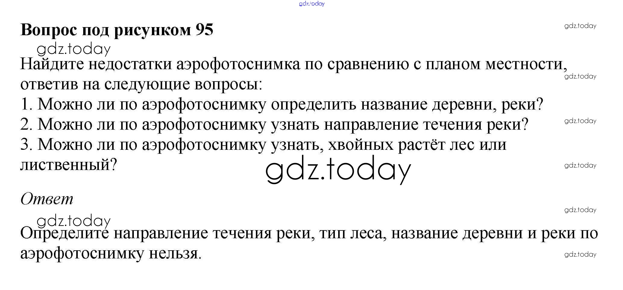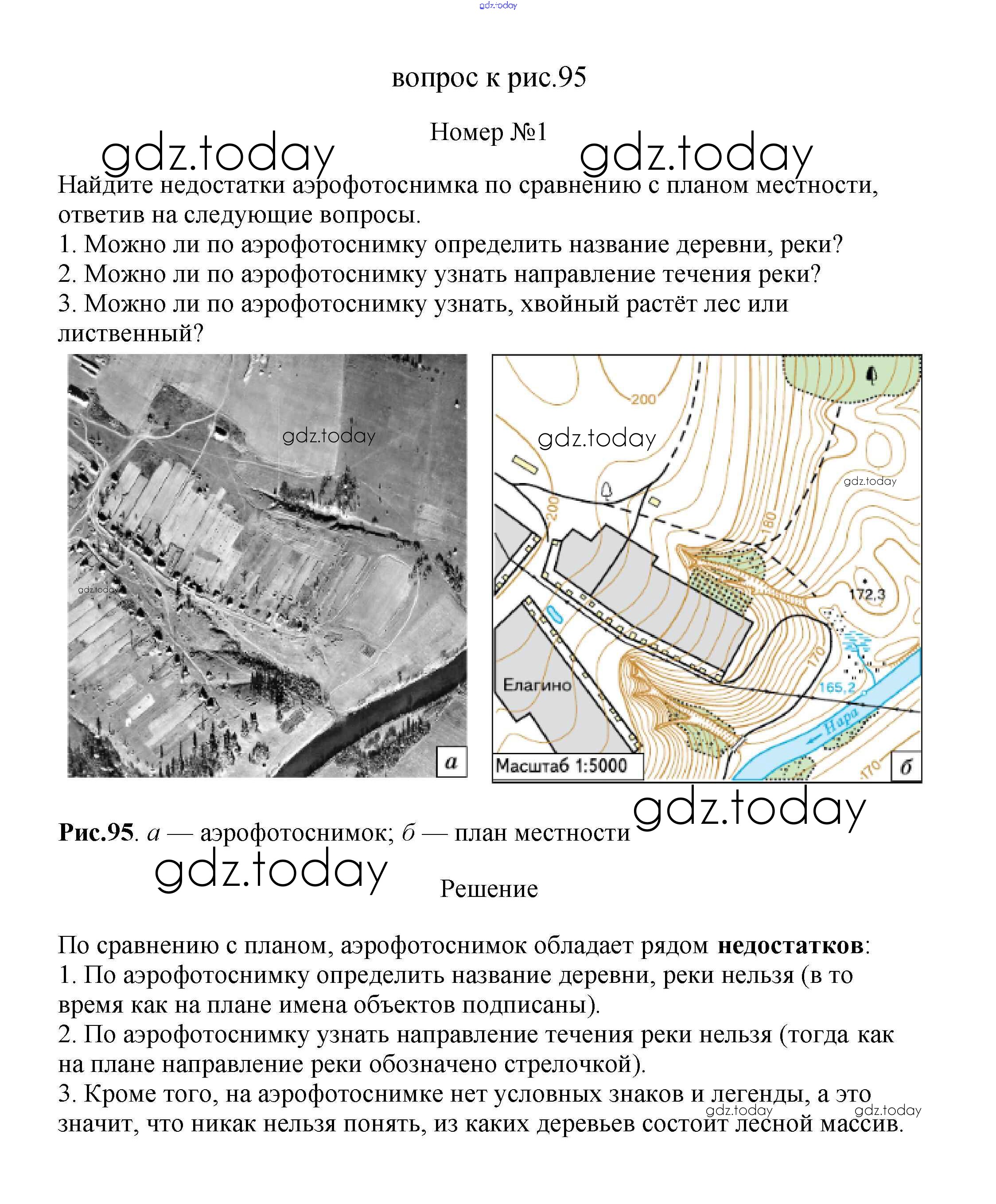 На страницах сайта gdz.today вы найдете учебный и вспомогательный материал, направленный на улучшения знаний школьной программы. ГДЗ - онлайн мир знаний Вопросы к рисункам §35. План местности рис. 95 Учебнику по Географии для 5-6 класса Климанова, Климанов Дрофа Вертикаль 2017