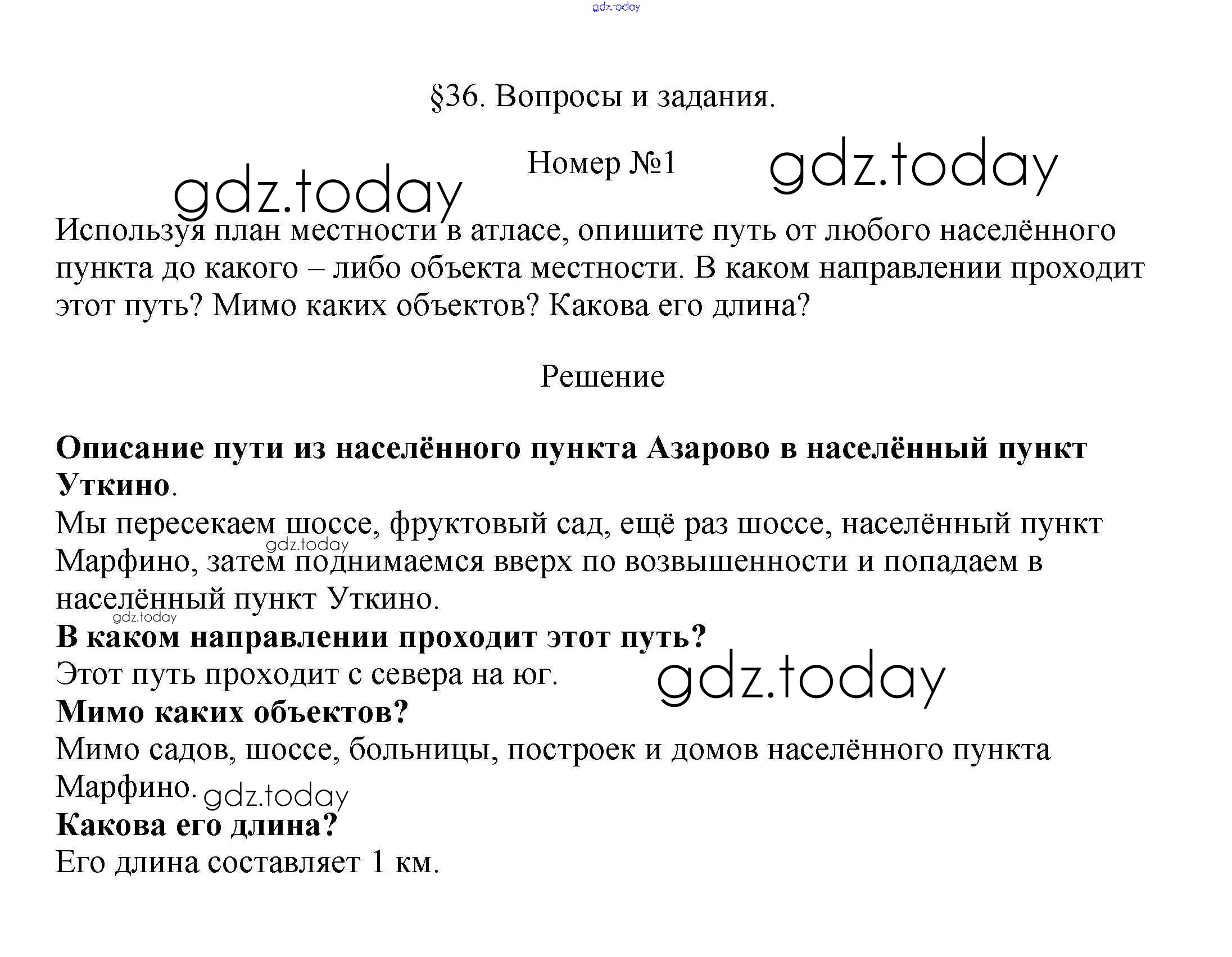 На страницах сайта gdz.today вы найдете учебный и вспомогательный материал, направленный на улучшения знаний школьной программы. ГДЗ - онлайн мир знаний Вопросы и задания §36. Ориентирование по плану местности в природе и в населённом пункте 1 Учебнику по Географии для 5-6 класса Климанова, Климанов Дрофа Вертикаль 2017