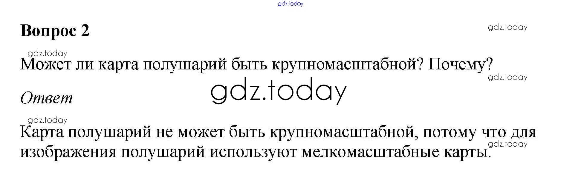На страницах сайта gdz.today вы найдете учебный и вспомогательный материал, направленный на улучшения знаний школьной программы. ГДЗ - онлайн мир знаний Вопросы и задания §38. Многообразие карт 2 Учебнику по Географии для 5-6 класса Климанова, Климанов Дрофа Вертикаль 2017