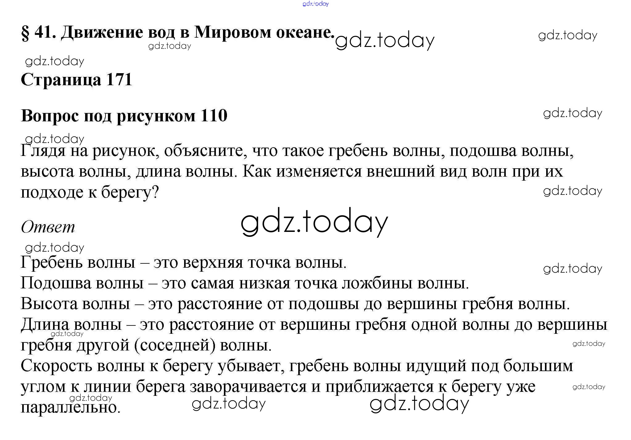 Ответы к Вопросы к рисункам §41. Движение вод в Мировом океане рис. 110 Учебнику по Географии для 5-6 класса Климанова, Климанов Дрофа Вертикаль 2017
