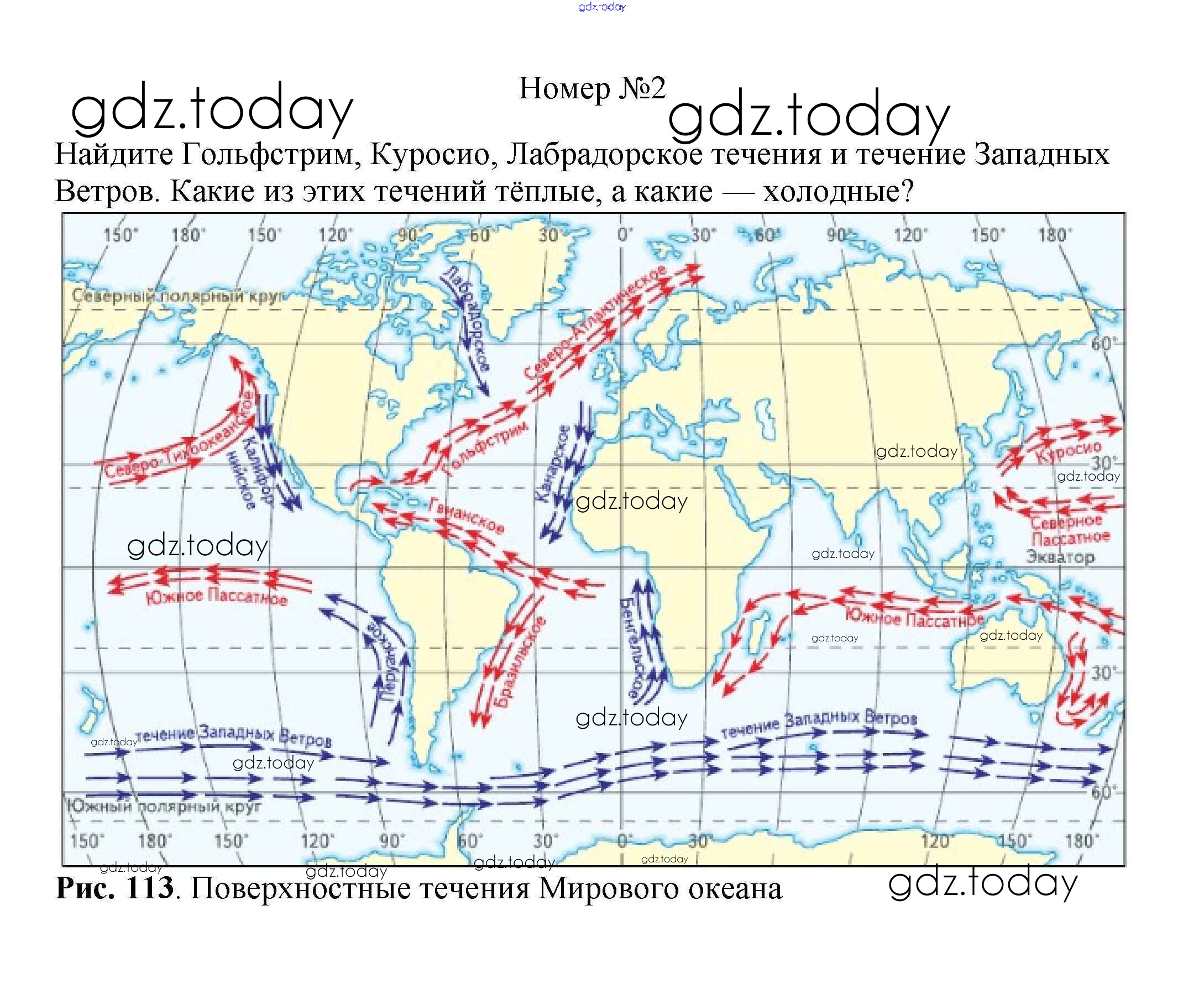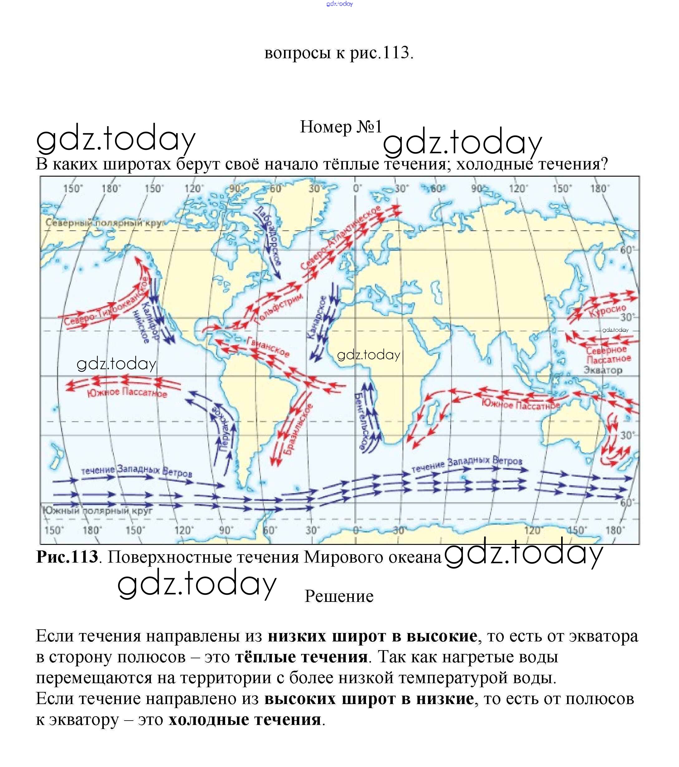 Ответы к Вопросы к рисункам §41. Движение вод в Мировом океане рис. 113 Учебнику по Географии для 5-6 класса Климанова, Климанов Дрофа Вертикаль 2017