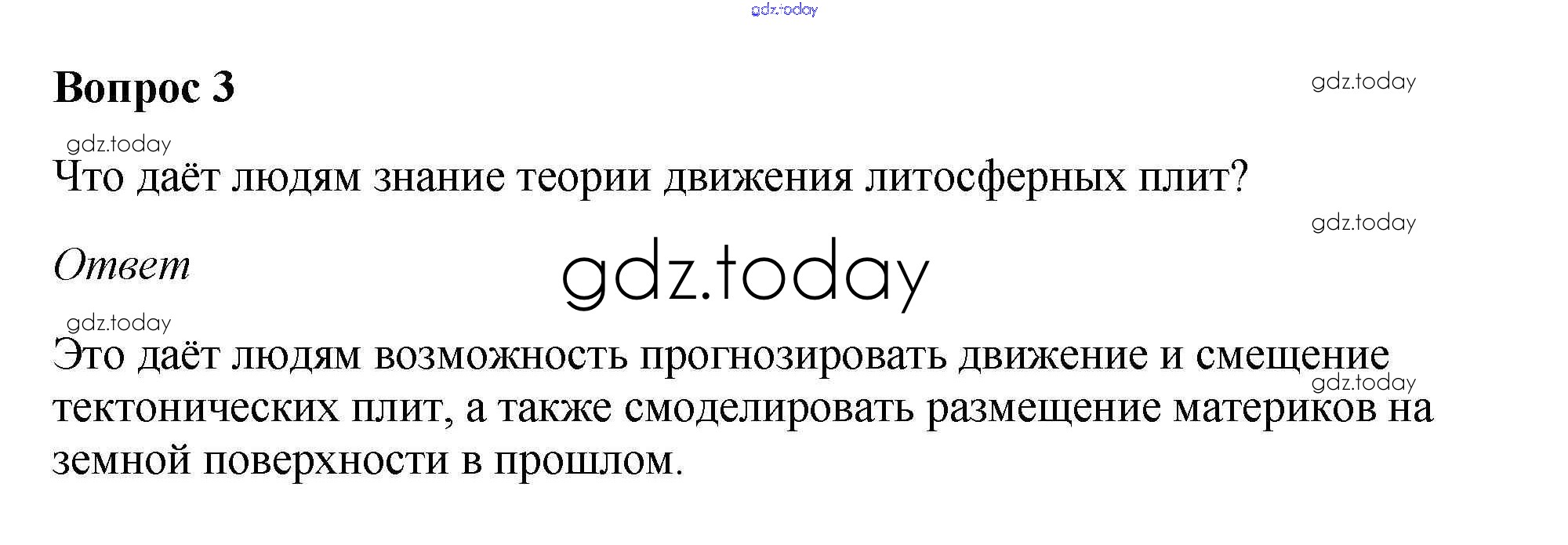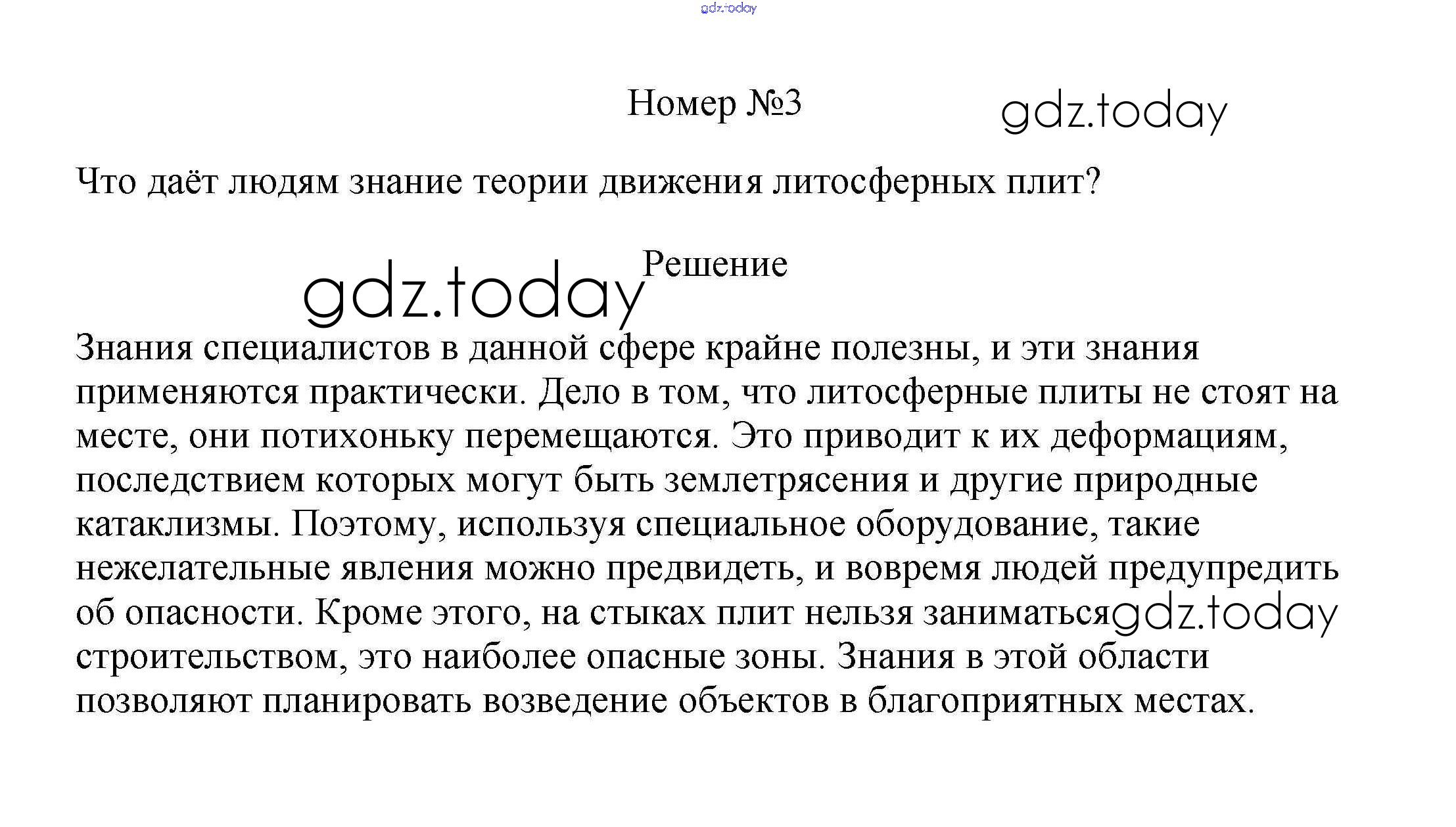 На страницах сайта gdz.today вы найдете учебный и вспомогательный материал, направленный на улучшения знаний школьной программы. ГДЗ - онлайн мир знаний Вопросы и задания §42. Движение литосферных плит 3 Учебнику по Географии для 5-6 класса Климанова, Климанов Дрофа Вертикаль 2017