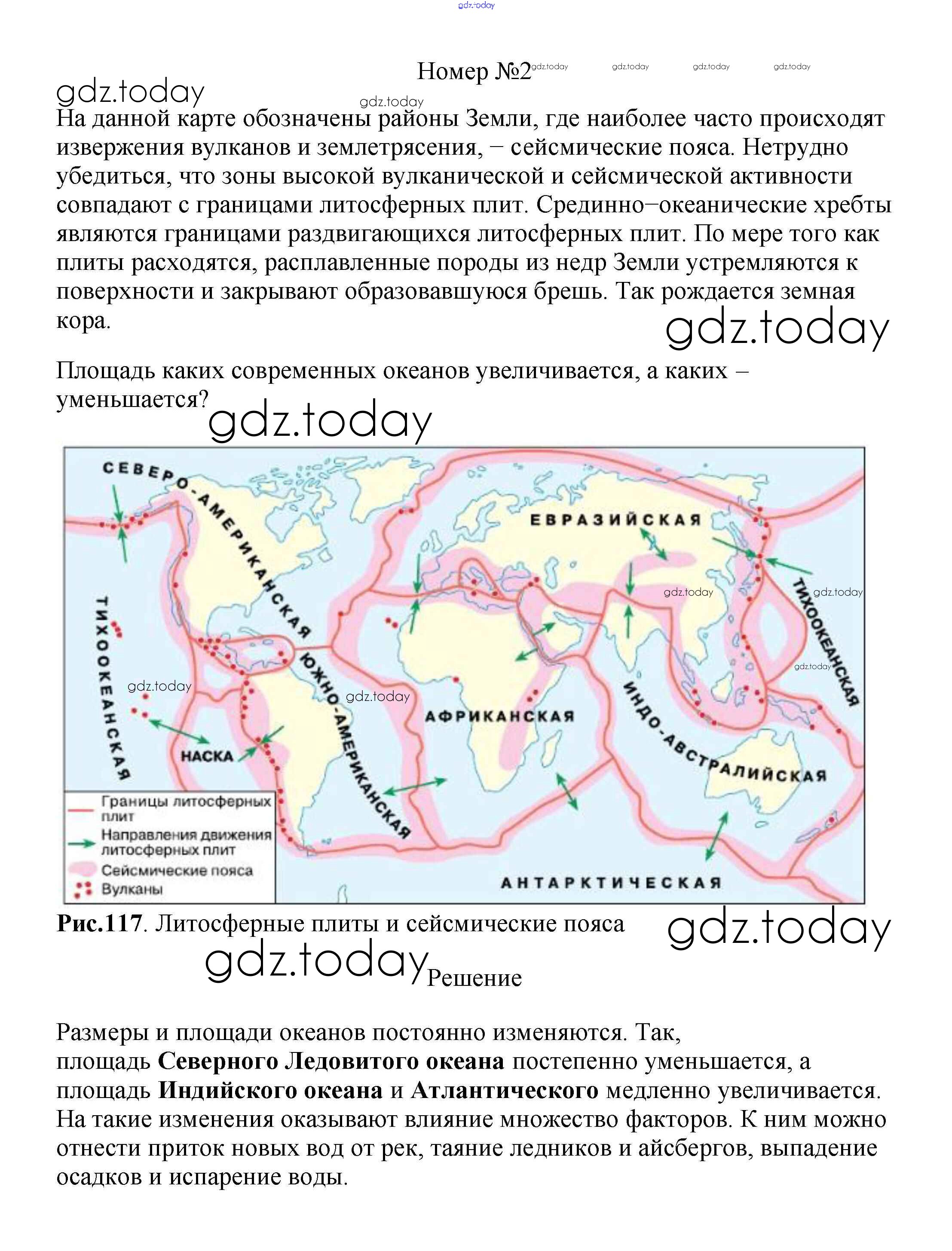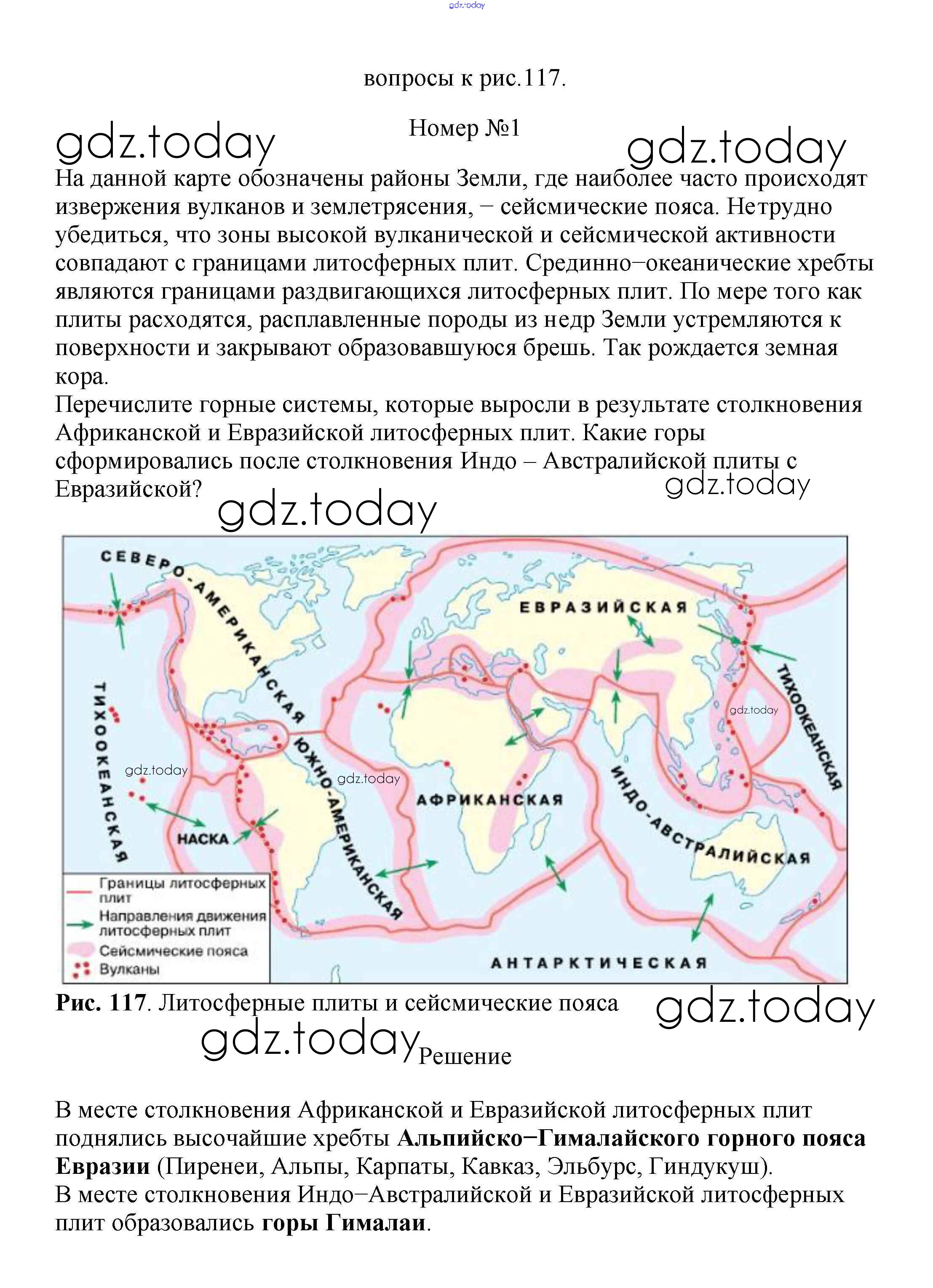 Ответы к Вопросы к рисункам §42. Движение литосферных плит рис. 117 Учебнику по Географии для 5-6 класса Климанова, Климанов Дрофа Вертикаль 2017