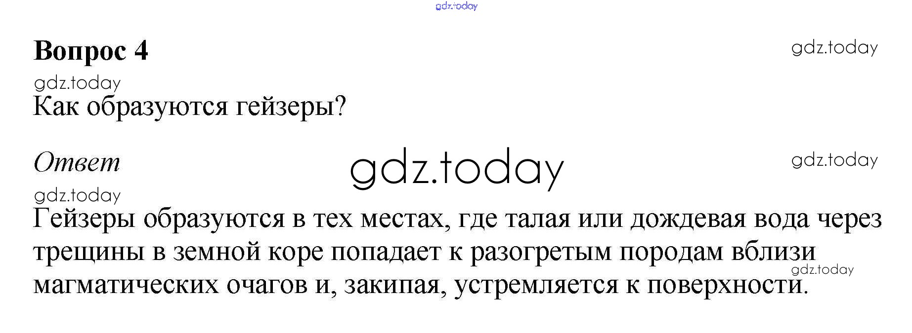 На страницах сайта gdz.today вы найдете учебный и вспомогательный материал, направленный на улучшения знаний школьной программы. ГДЗ - онлайн мир знаний Вопросы и задания §44. Вулканы 4 Учебнику по Географии для 5-6 класса Климанова, Климанов Дрофа Вертикаль 2017