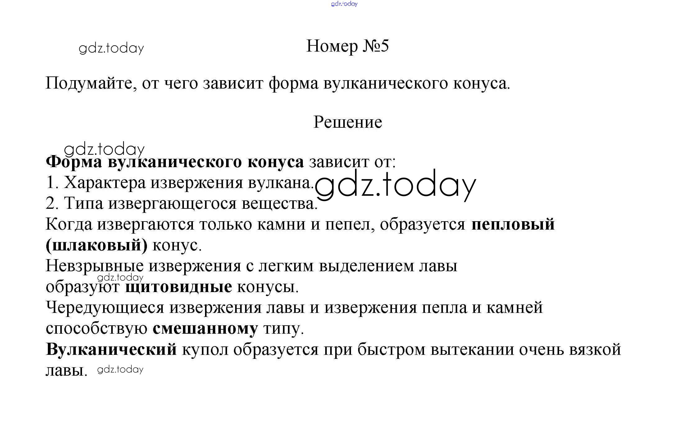 На страницах сайта gdz.today вы найдете учебный и вспомогательный материал, направленный на улучшения знаний школьной программы. ГДЗ - онлайн мир знаний Вопросы и задания §44. Вулканы 5 Учебнику по Географии для 5-6 класса Климанова, Климанов Дрофа Вертикаль 2017