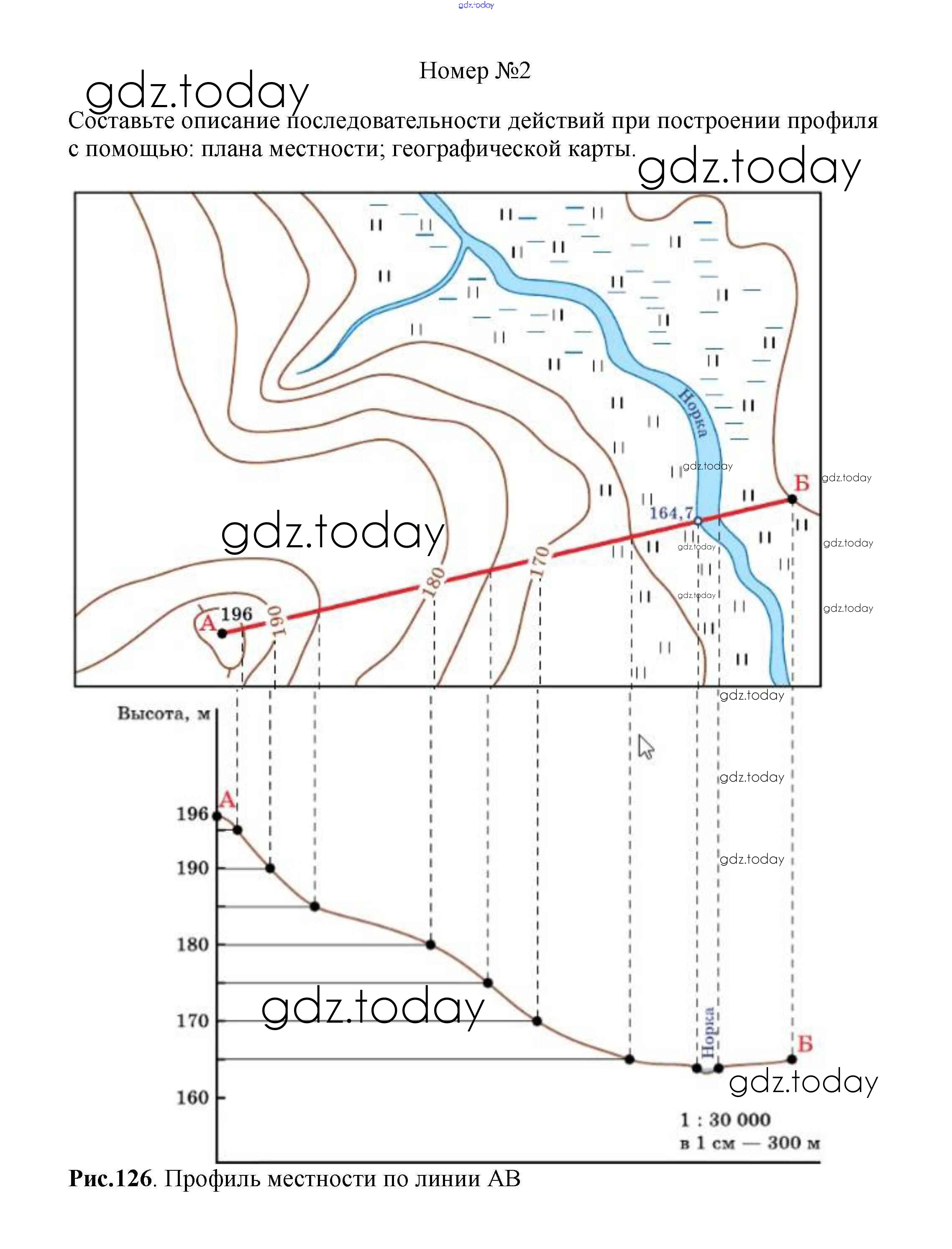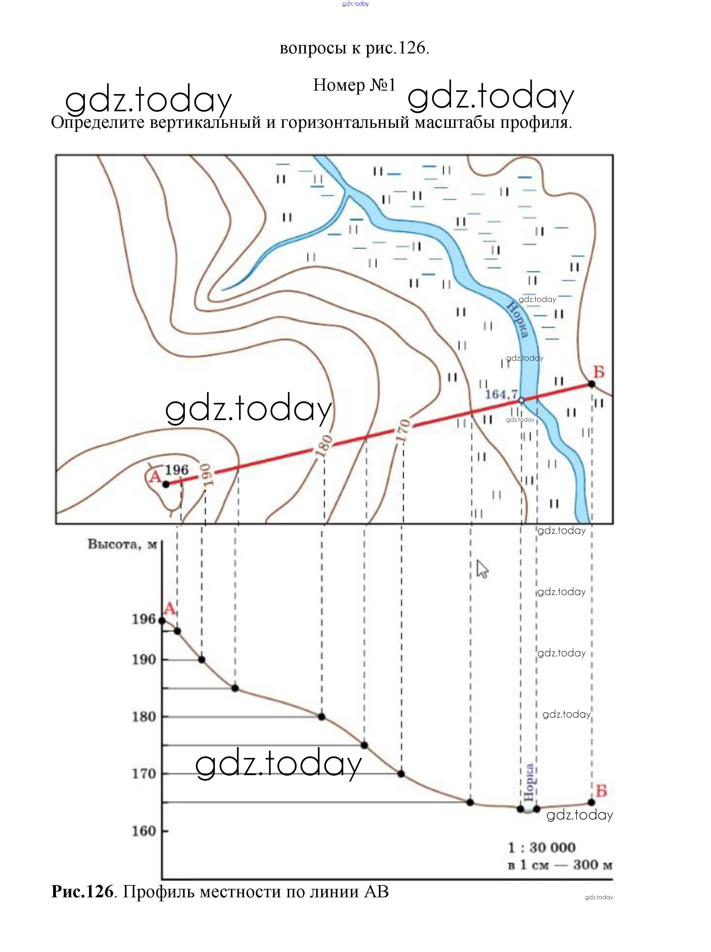 Ответы к Вопросы к рисункам §45. Изображение рельефа на планах местности и географических картах рис. 126 Учебнику по Географии для 5-6 класса Климанова, Климанов Дрофа Вертикаль 2017