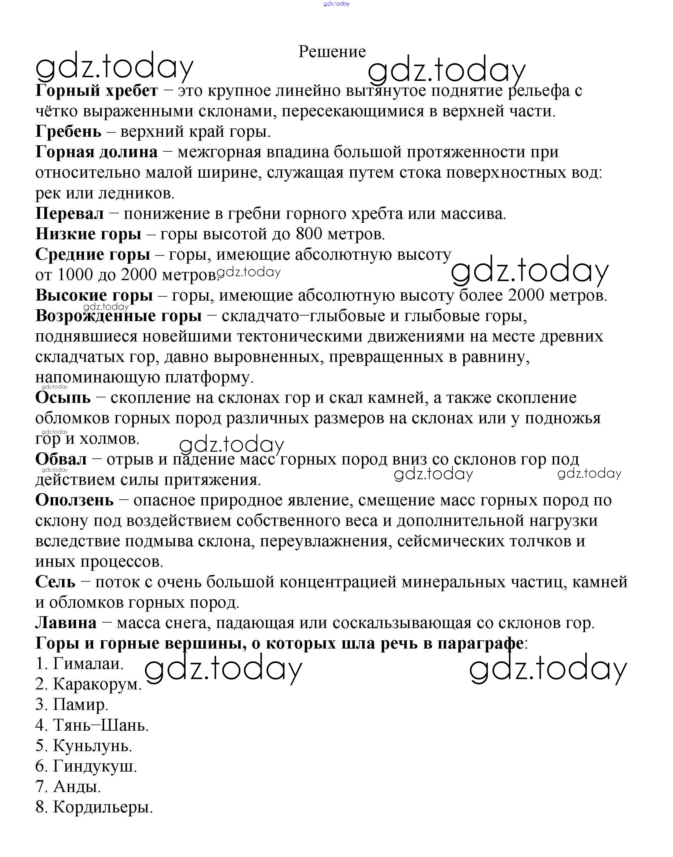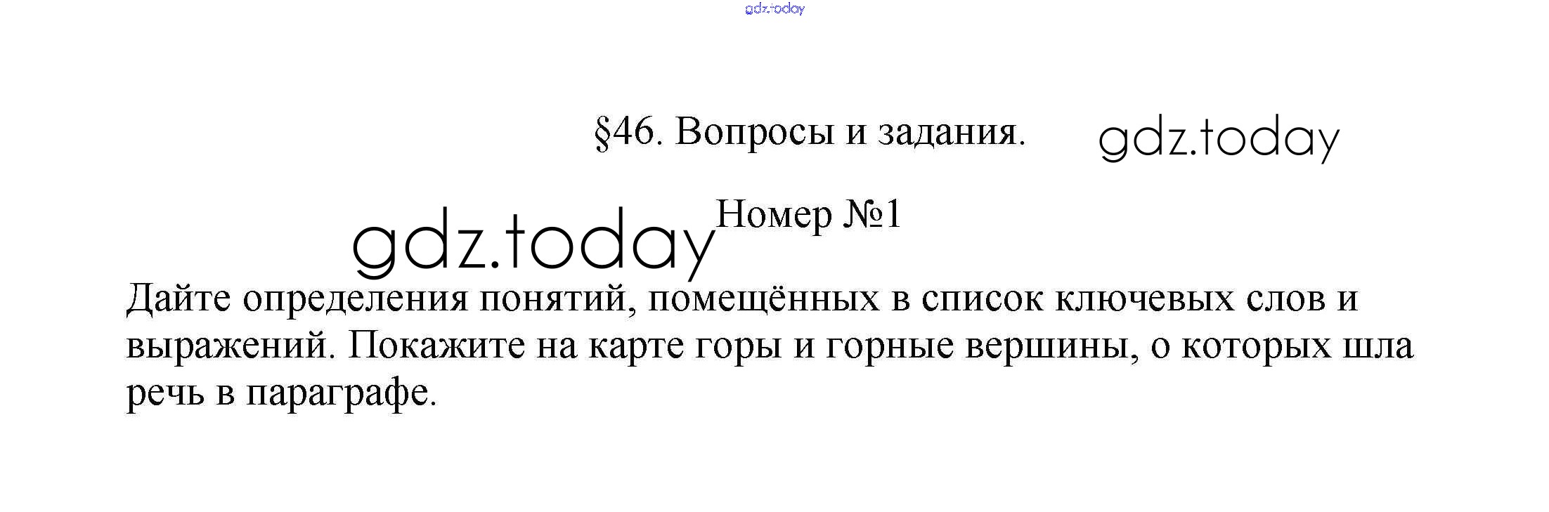 На страницах сайта gdz.today вы найдете учебный и вспомогательный материал, направленный на улучшения знаний школьной программы. ГДЗ - онлайн мир знаний Вопросы и задания §46. Горы 1 Учебнику по Географии для 5-6 класса Климанова, Климанов Дрофа Вертикаль 2017