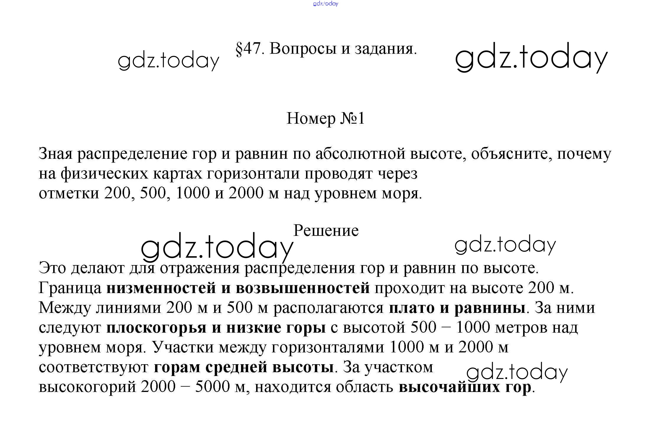 На страницах сайта gdz.today вы найдете учебный и вспомогательный материал, направленный на улучшения знаний школьной программы. ГДЗ - онлайн мир знаний Вопросы и задания §47. Равнин 1 Учебнику по Географии для 5-6 класса Климанова, Климанов Дрофа Вертикаль 2017