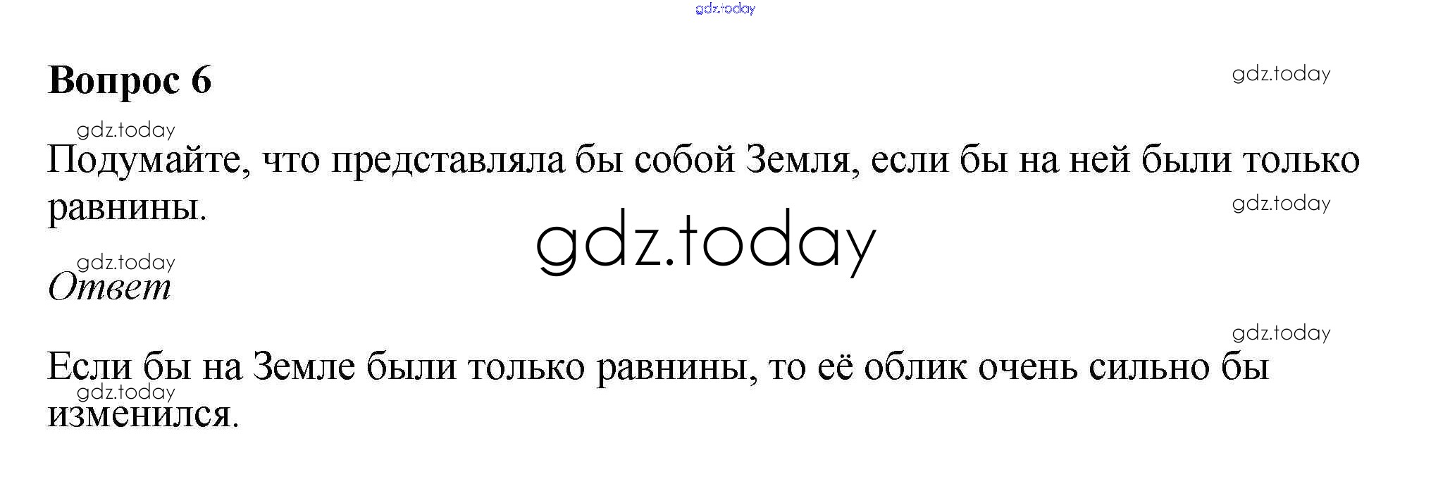 На страницах сайта gdz.today вы найдете учебный и вспомогательный материал, направленный на улучшения знаний школьной программы. ГДЗ - онлайн мир знаний Вопросы и задания §47. Равнин 6 Учебнику по Географии для 5-6 класса Климанова, Климанов Дрофа Вертикаль 2017