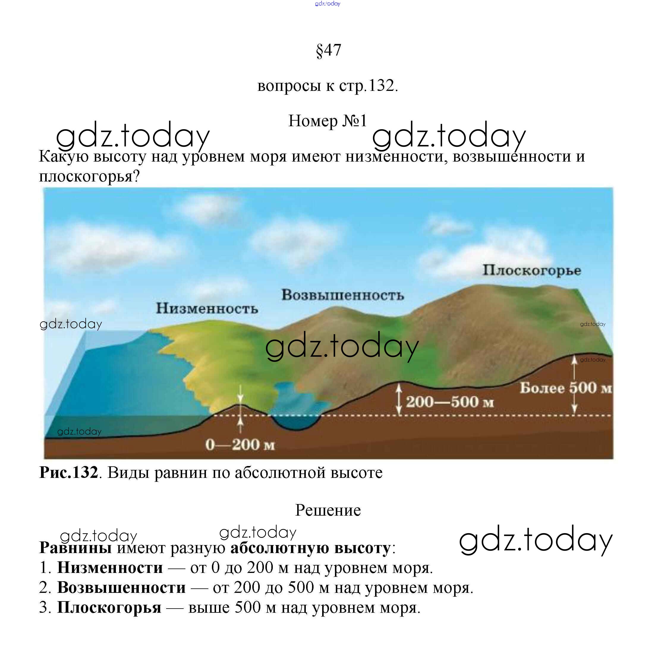 Ответы к Вопросы §47. Равнин стр.132 Учебнику по Географии для 5-6 класса Климанова, Климанов Дрофа Вертикаль 2017