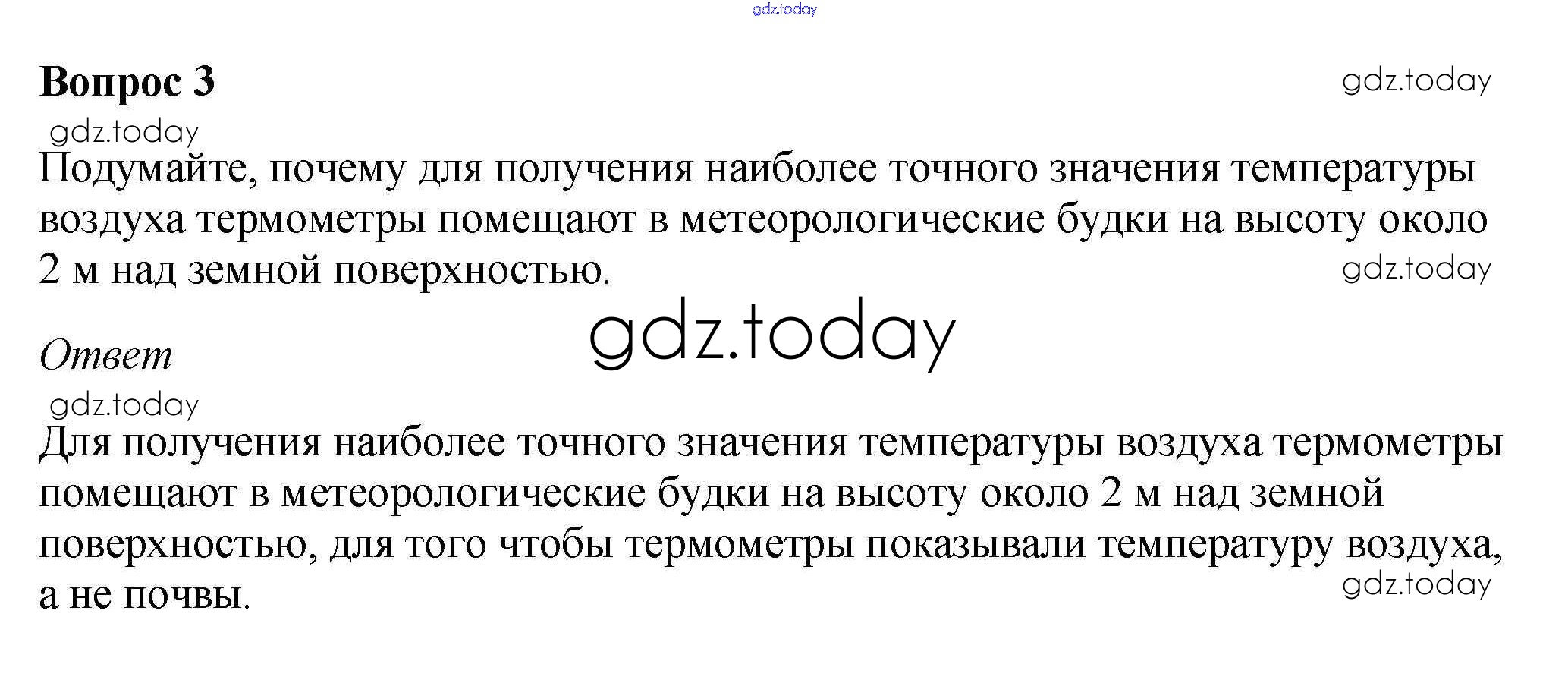 На страницах сайта gdz.today вы найдете учебный и вспомогательный материал, направленный на улучшения знаний школьной программы. ГДЗ - онлайн мир знаний Вопросы и задания §48. Температура воздуха 3 Учебнику по Географии для 5-6 класса Климанова, Климанов Дрофа Вертикаль 2017