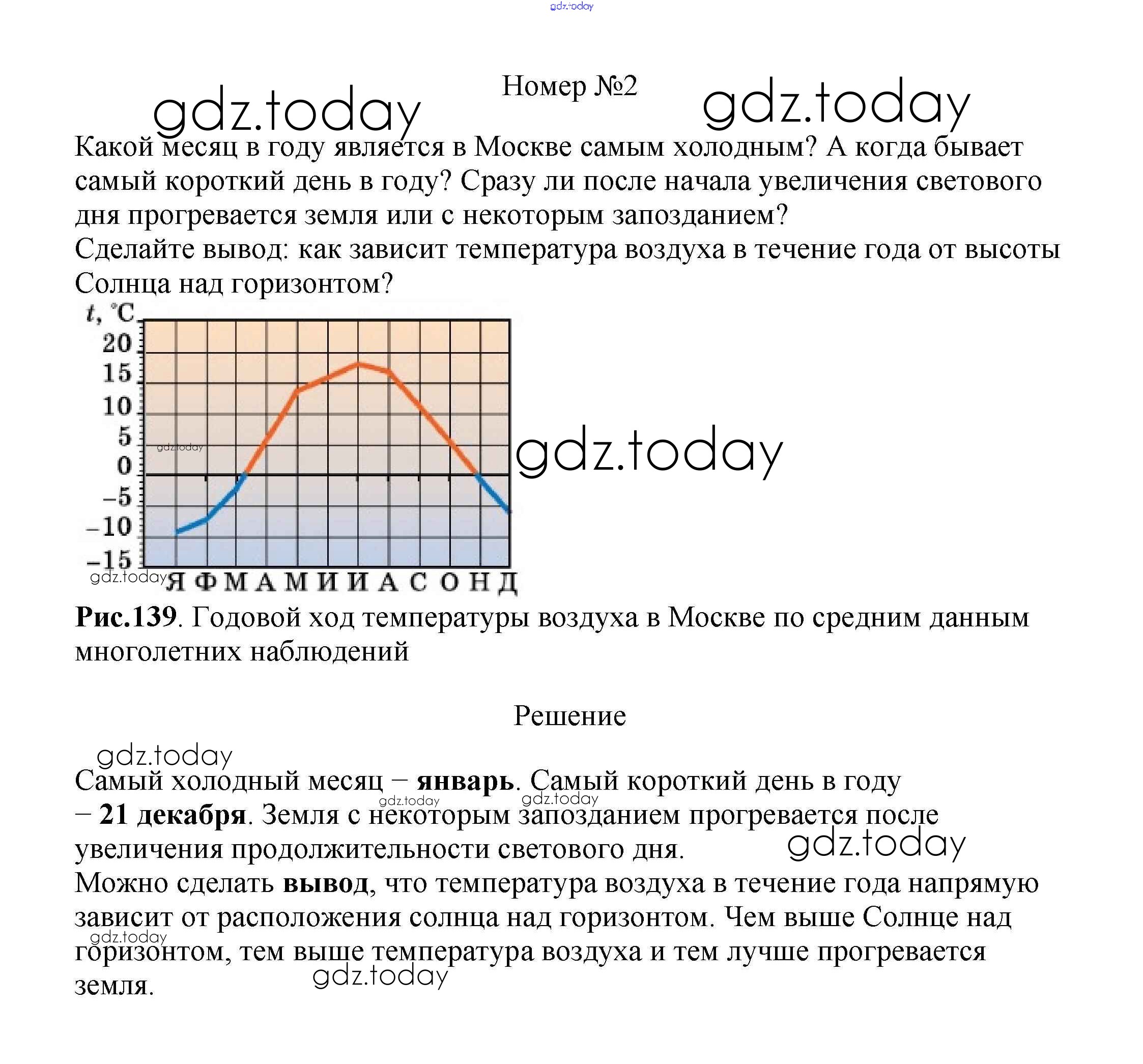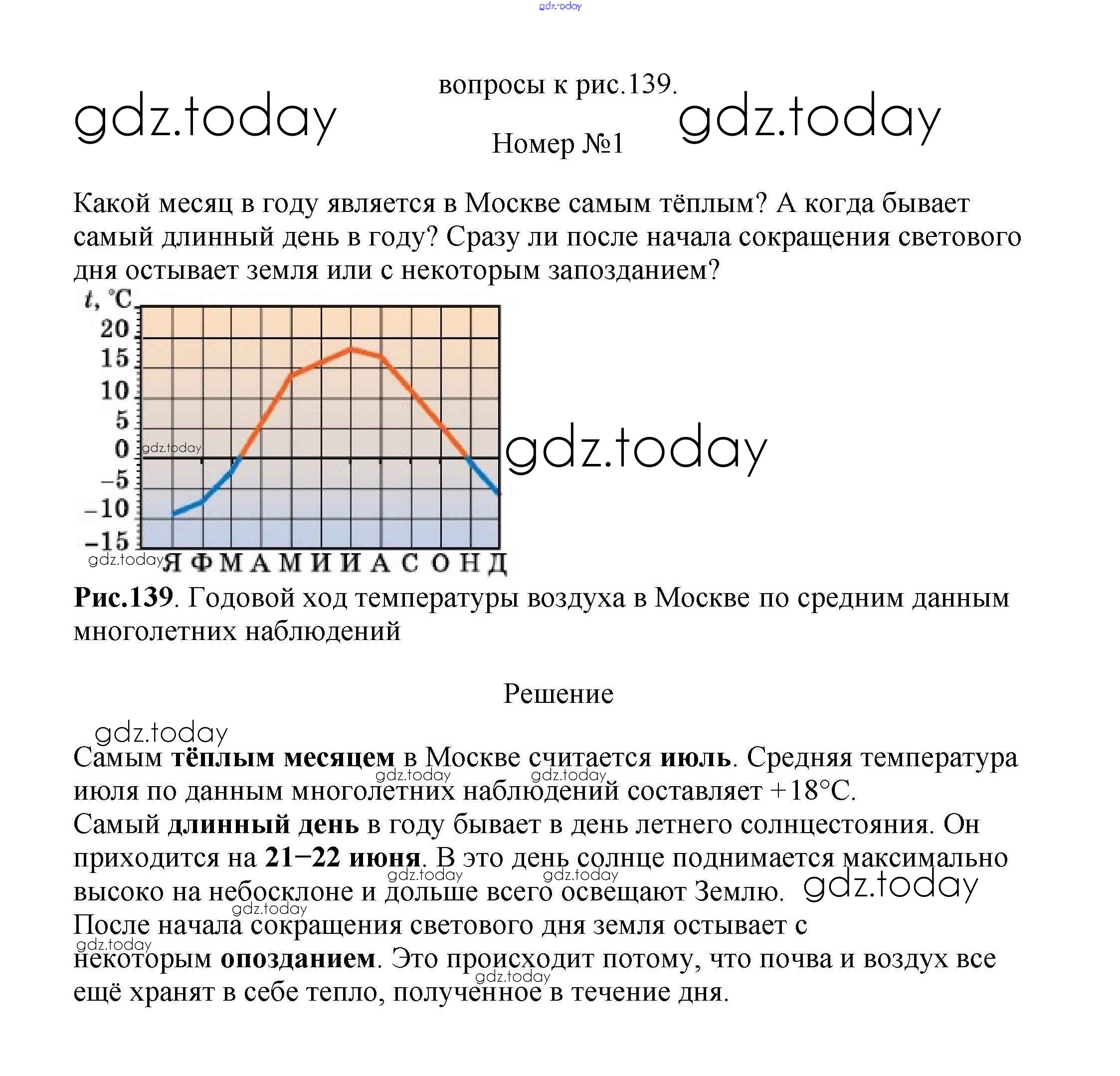 На страницах сайта gdz.today вы найдете учебный и вспомогательный материал, направленный на улучшения знаний школьной программы. ГДЗ - онлайн мир знаний Вопросы к рисункам §48. Температура воздуха рис. 139 Учебнику по Географии для 5-6 класса Климанова, Климанов Дрофа Вертикаль 2017