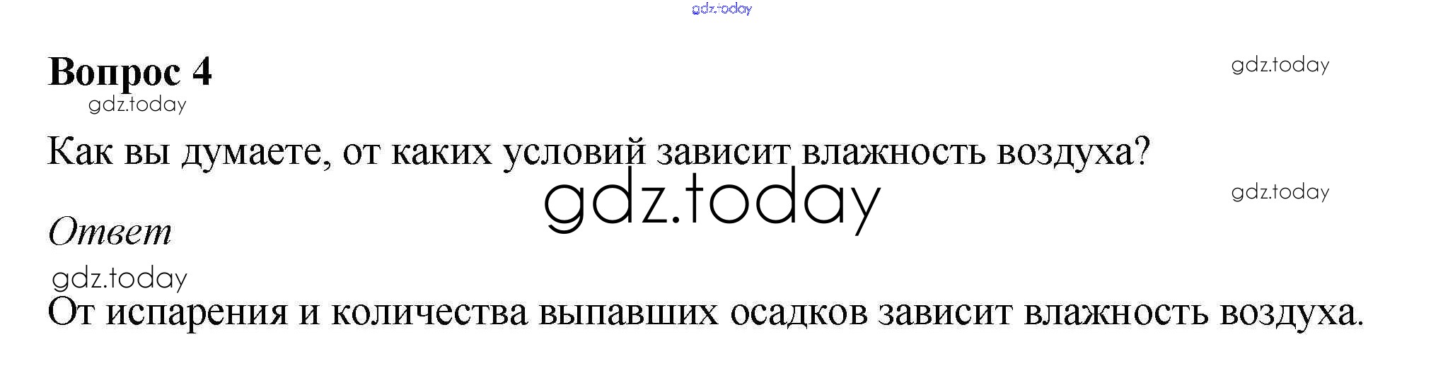На страницах сайта gdz.today вы найдете учебный и вспомогательный материал, направленный на улучшения знаний школьной программы. ГДЗ - онлайн мир знаний Вопросы и задания §50. Облака и атмосферные осадки 4 Учебнику по Географии для 5-6 класса Климанова, Климанов Дрофа Вертикаль 2017