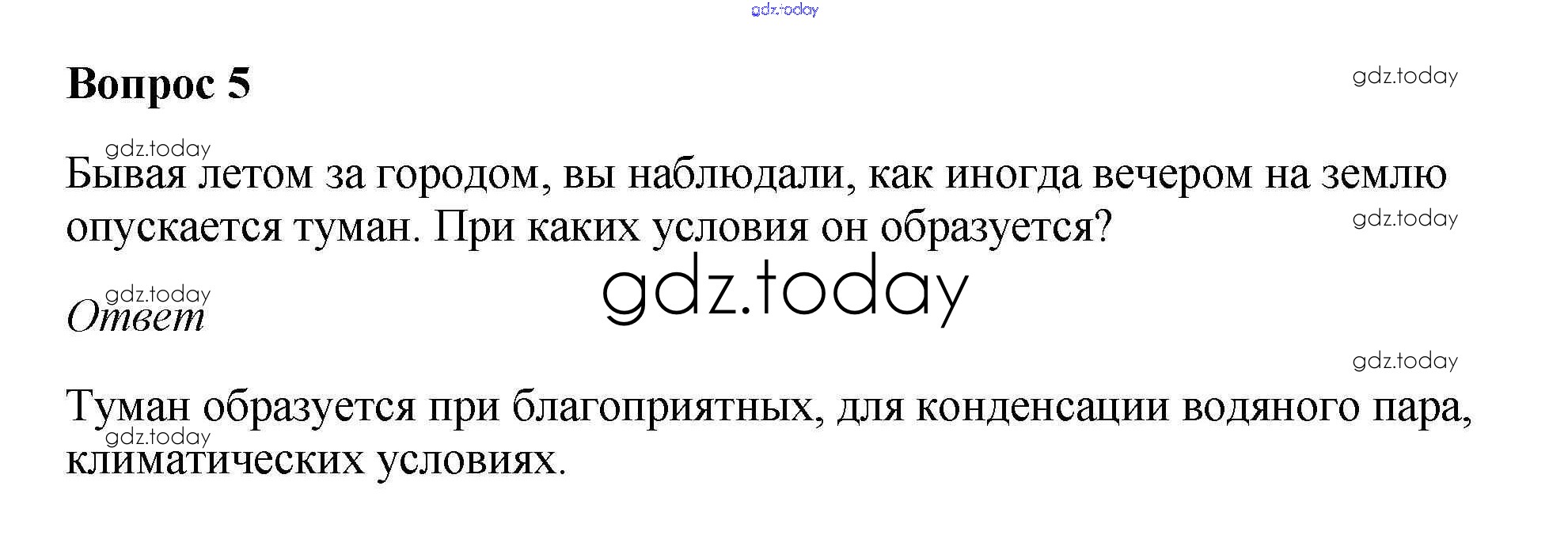 На страницах сайта gdz.today вы найдете учебный и вспомогательный материал, направленный на улучшения знаний школьной программы. ГДЗ - онлайн мир знаний Вопросы и задания §50. Облака и атмосферные осадки 5 Учебнику по Географии для 5-6 класса Климанова, Климанов Дрофа Вертикаль 2017