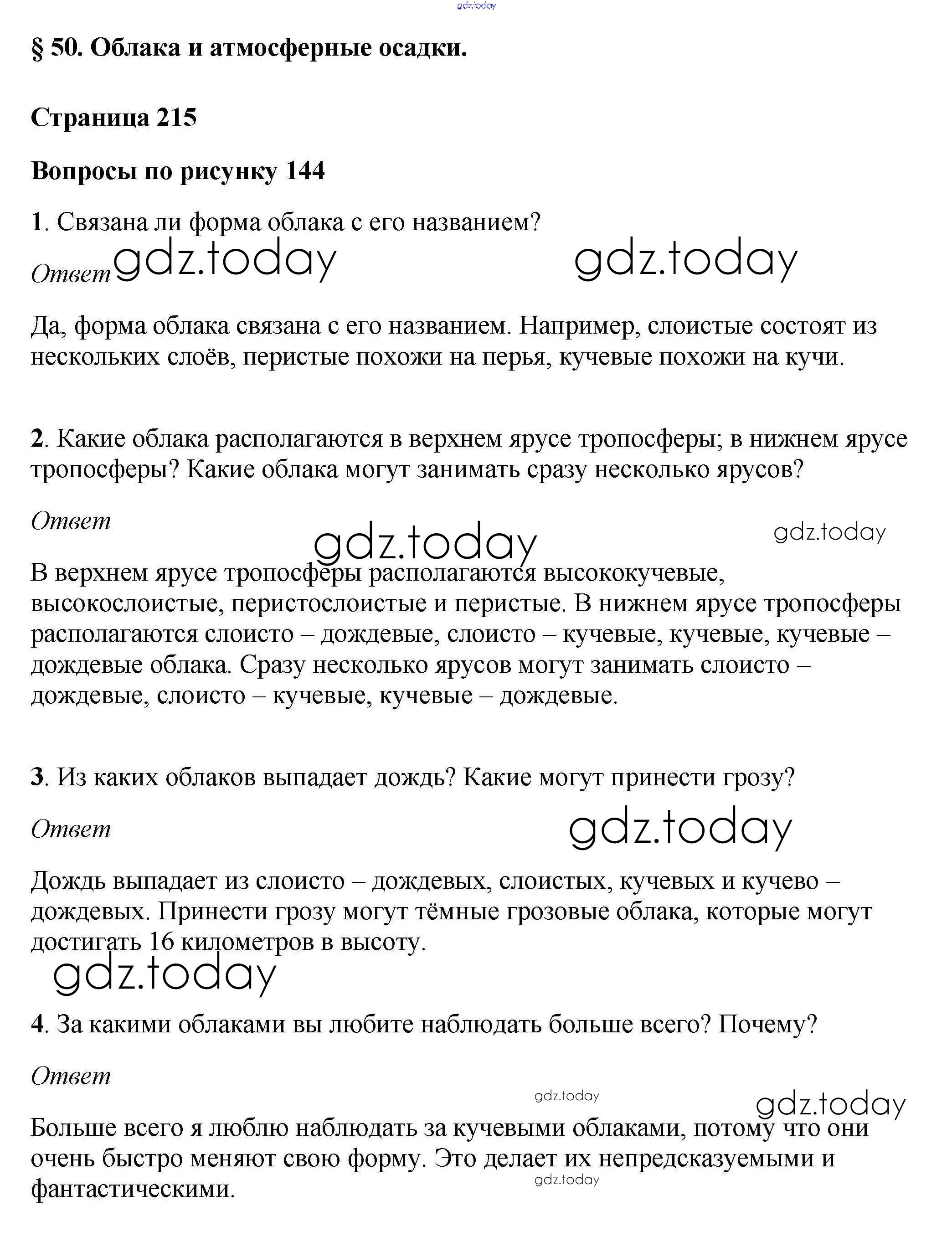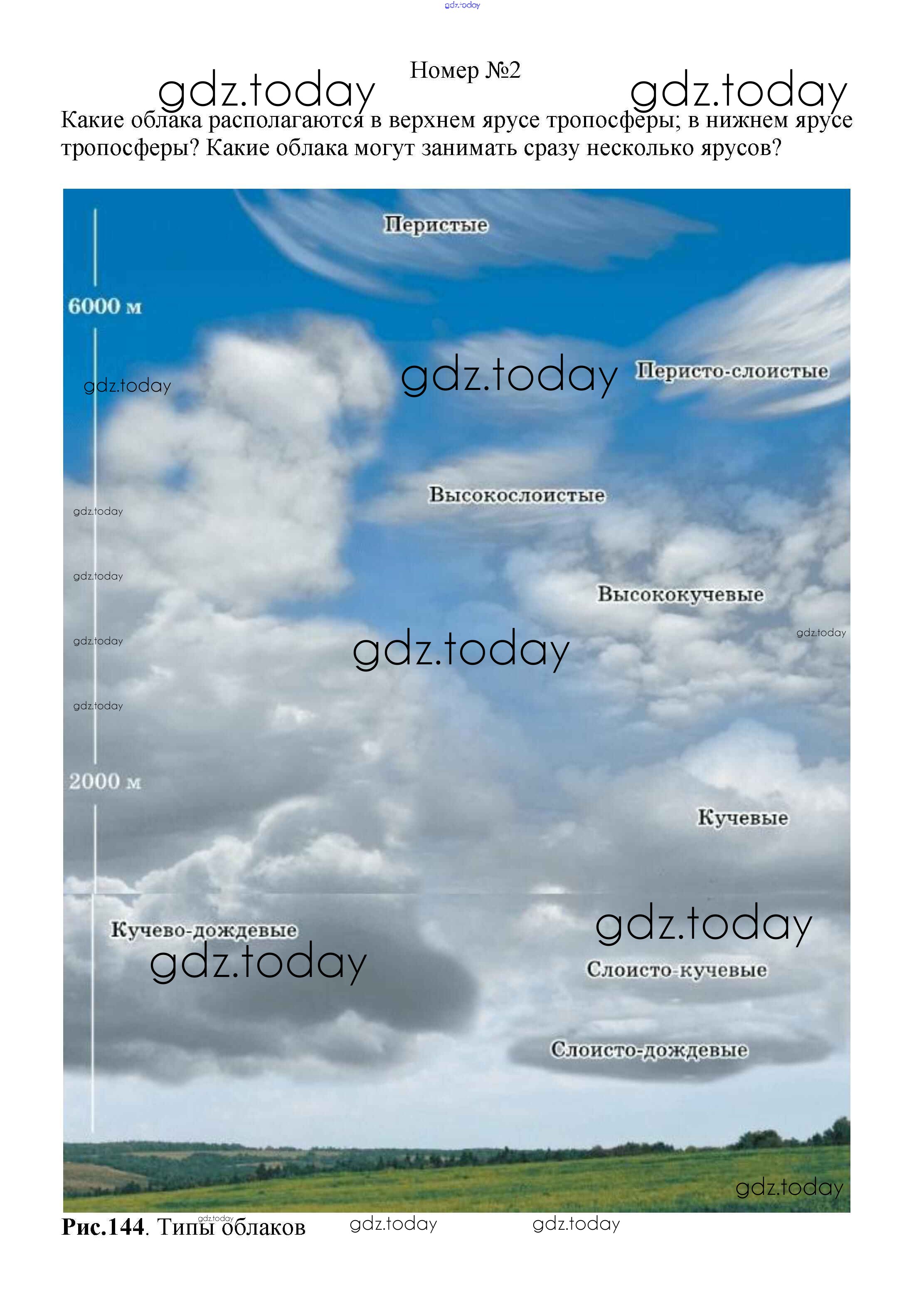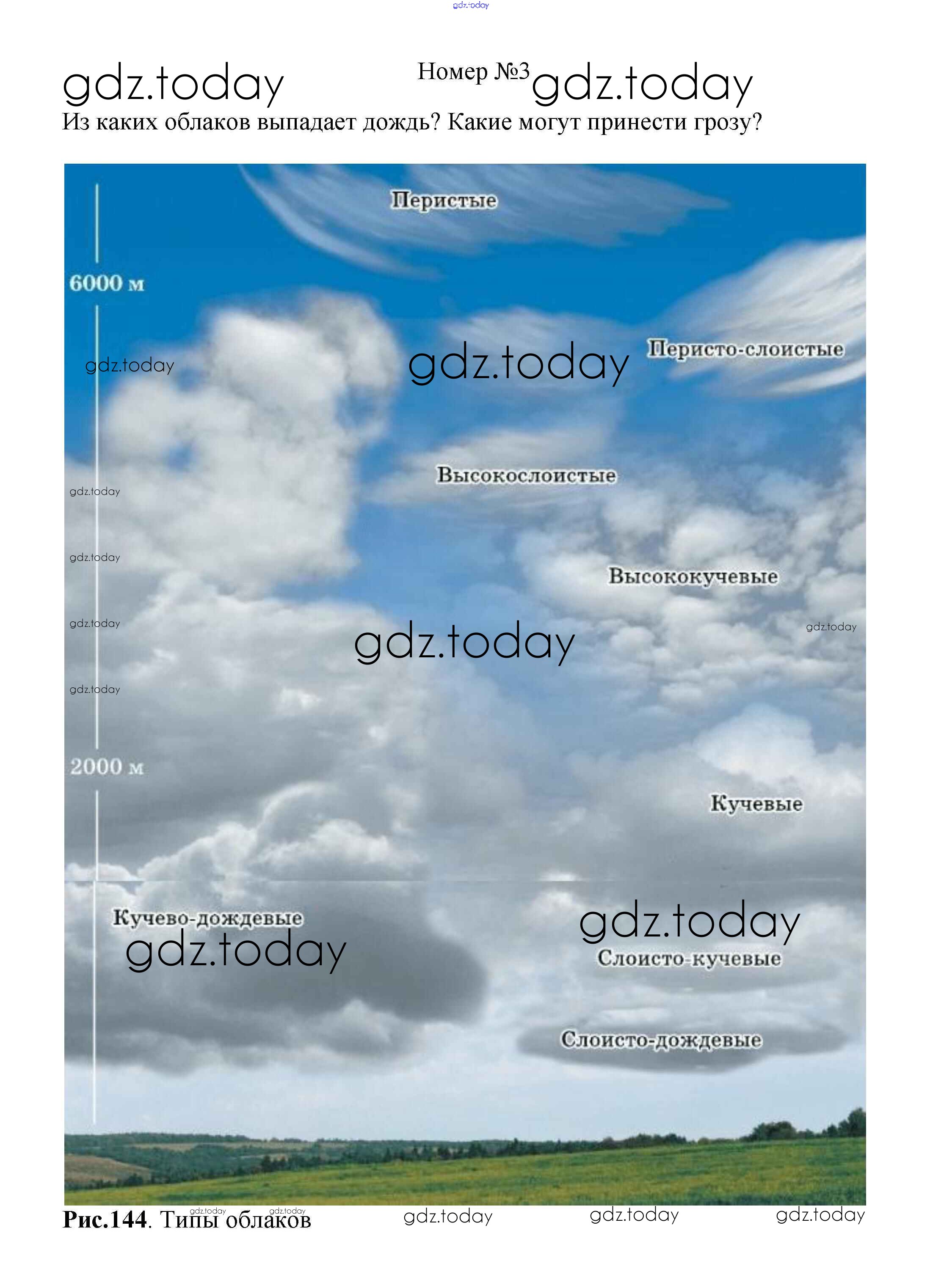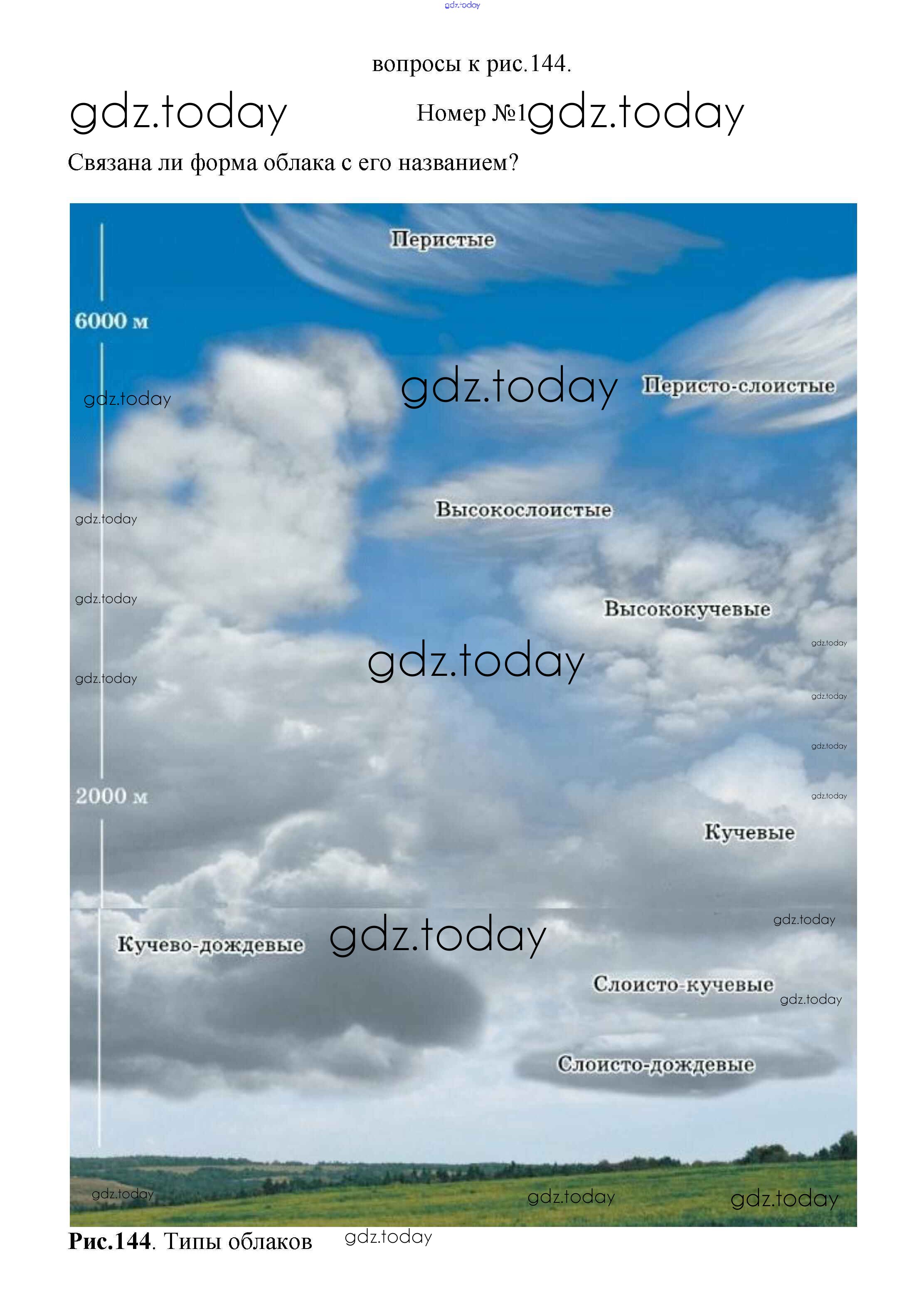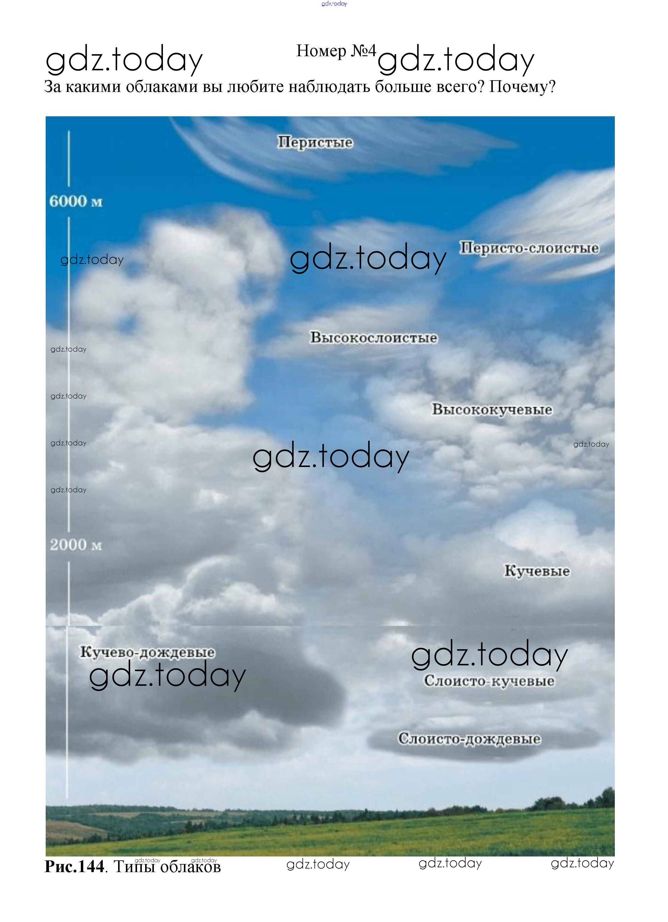 Ответы к Вопросы к рисункам §50. Облака и атмосферные осадки рис. 144 Учебнику по Географии для 5-6 класса Климанова, Климанов Дрофа Вертикаль 2017