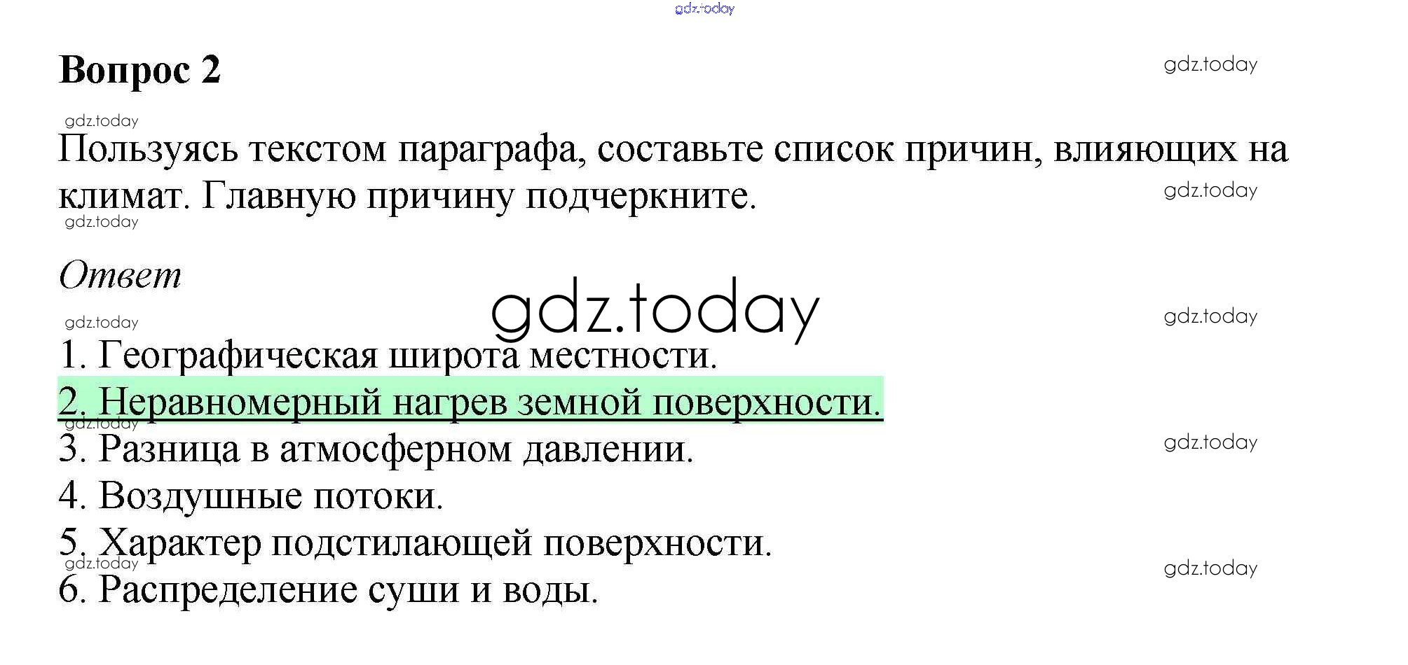 На страницах сайта gdz.today вы найдете учебный и вспомогательный материал, направленный на улучшения знаний школьной программы. ГДЗ - онлайн мир знаний Вопросы и задания §51. Погода и климат 2 Учебнику по Географии для 5-6 класса Климанова, Климанов Дрофа Вертикаль 2017