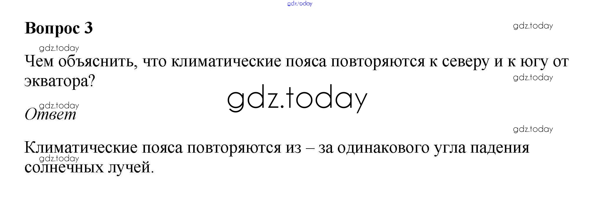 На страницах сайта gdz.today вы найдете учебный и вспомогательный материал, направленный на улучшения знаний школьной программы. ГДЗ - онлайн мир знаний Вопросы и задания §51. Погода и климат 3 Учебнику по Географии для 5-6 класса Климанова, Климанов Дрофа Вертикаль 2017