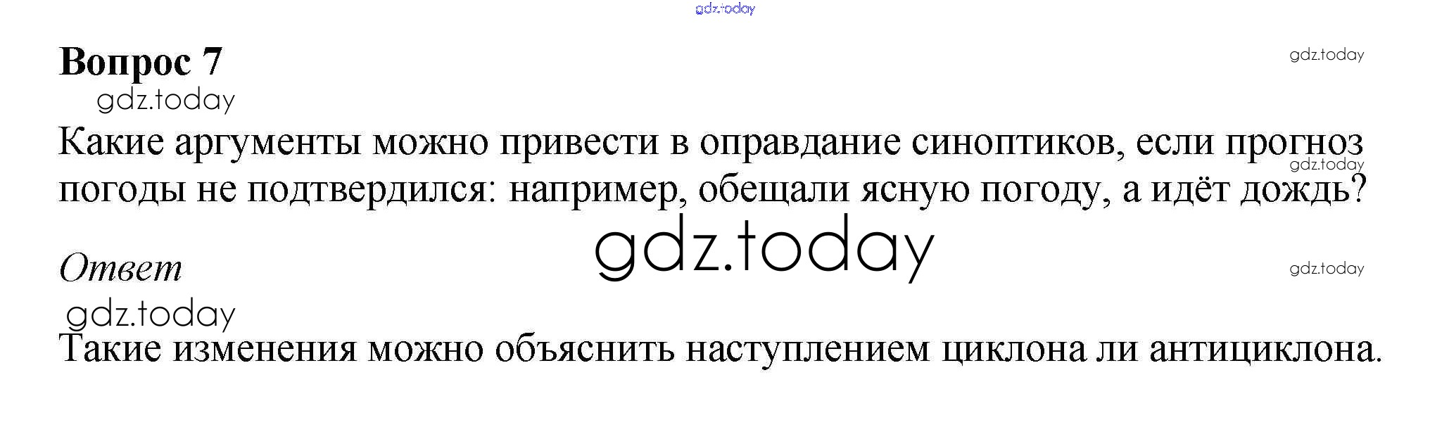 На страницах сайта gdz.today вы найдете учебный и вспомогательный материал, направленный на улучшения знаний школьной программы. ГДЗ - онлайн мир знаний Вопросы и задания §51. Погода и климат 7 Учебнику по Географии для 5-6 класса Климанова, Климанов Дрофа Вертикаль 2017