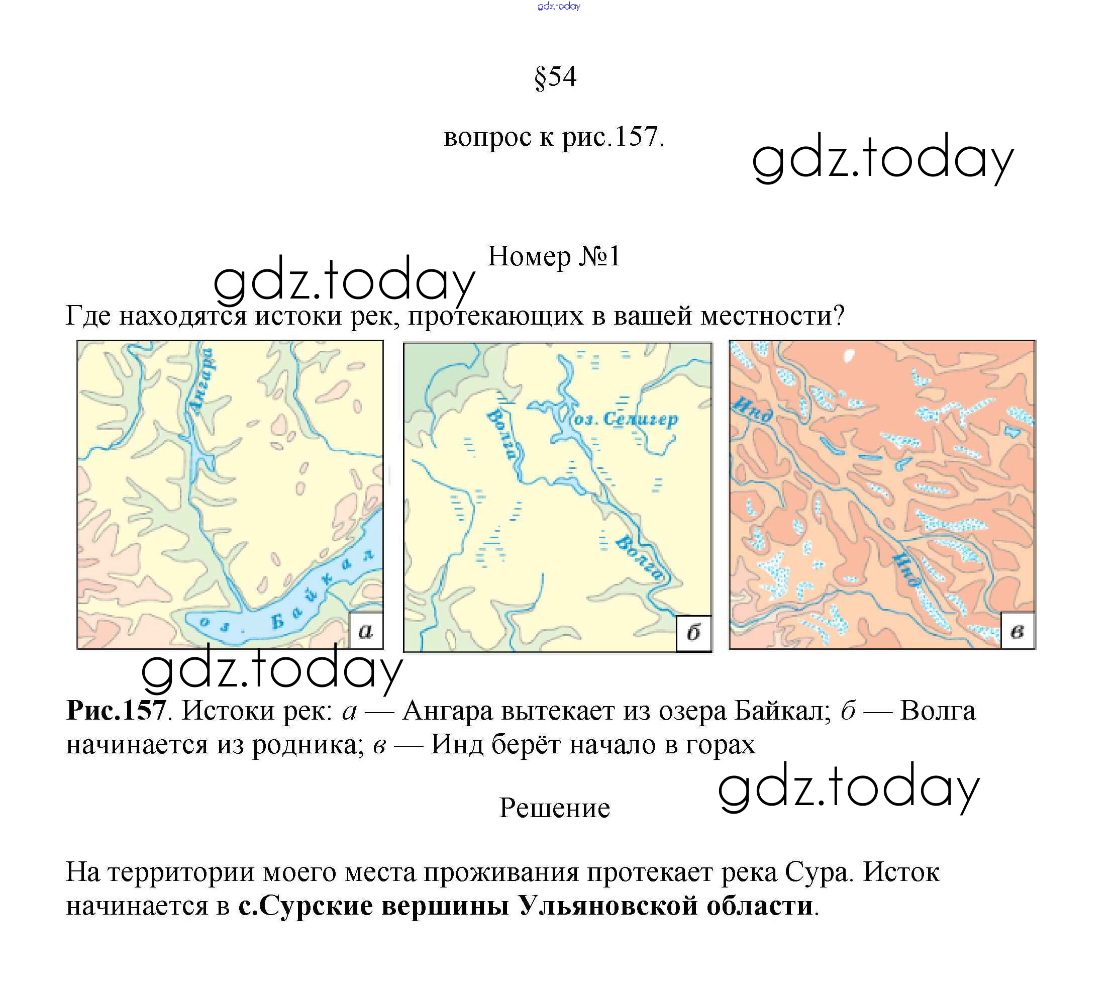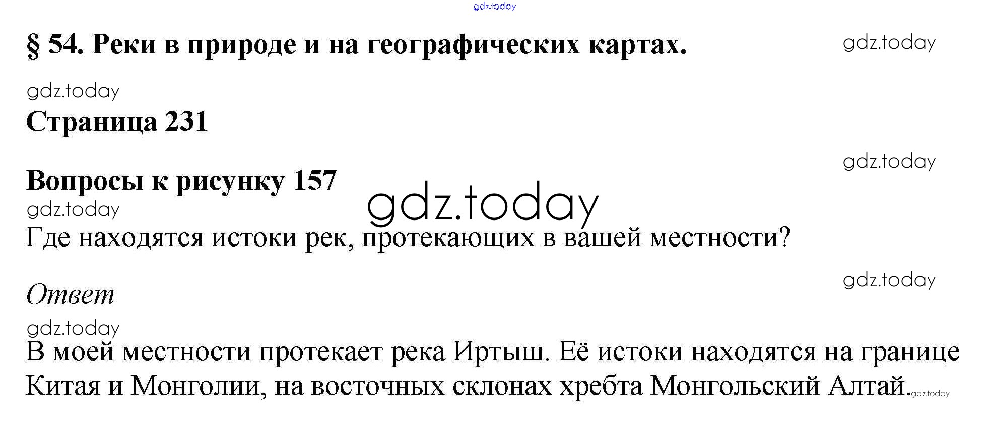 На страницах сайта gdz.today вы найдете учебный и вспомогательный материал, направленный на улучшения знаний школьной программы. ГДЗ - онлайн мир знаний Вопросы к рисункам §54. Реки в природе и на географических картах рис. 157 Учебнику по Географии для 5-6 класса Климанова, Климанов Дрофа Вертикаль 2017