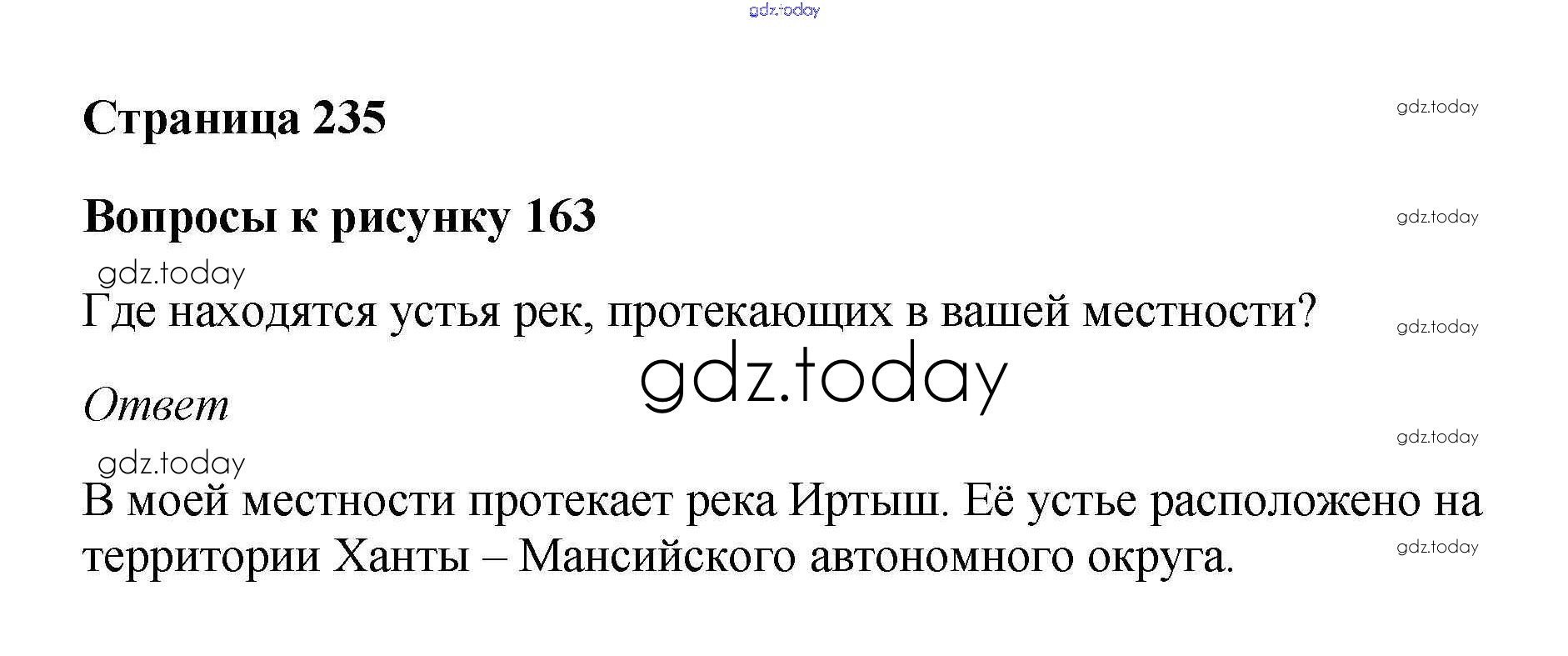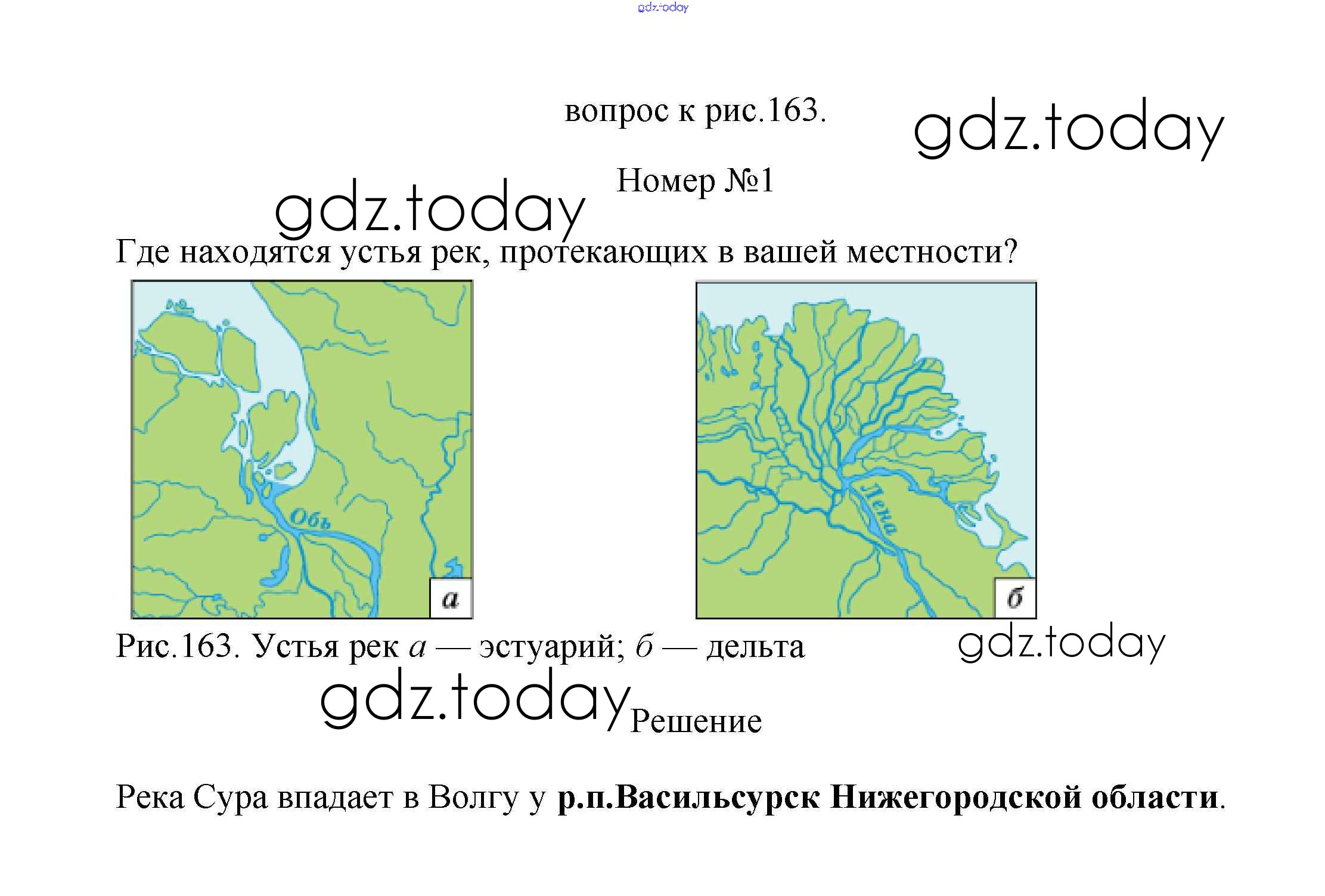 На страницах сайта gdz.today вы найдете учебный и вспомогательный материал, направленный на улучшения знаний школьной программы. ГДЗ - онлайн мир знаний Вопросы к рисункам §54. Реки в природе и на географических картах рис. 163 Учебнику по Географии для 5-6 класса Климанова, Климанов Дрофа Вертикаль 2017