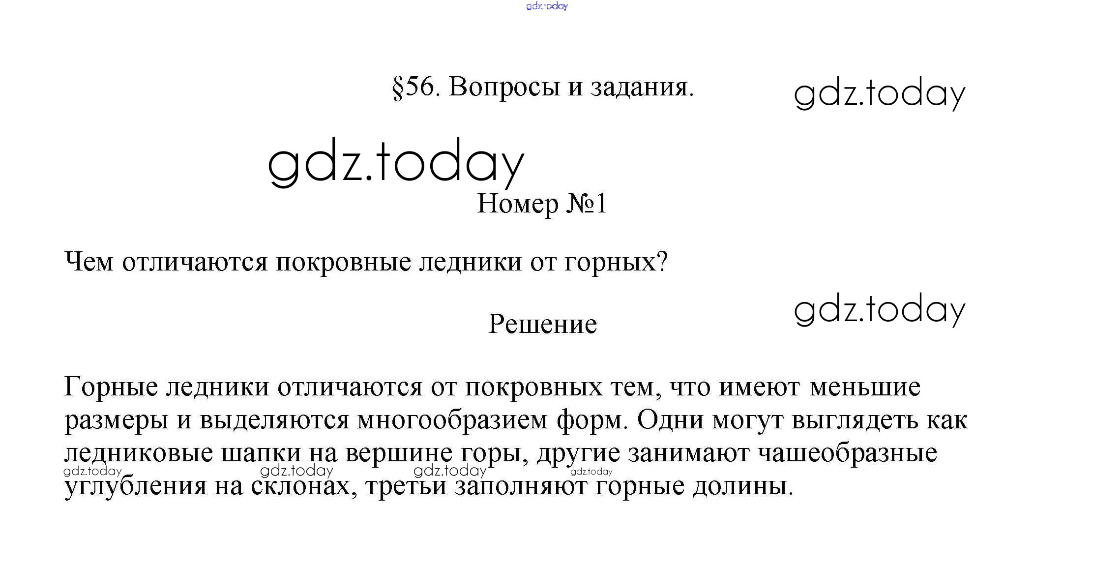 Ответы к Вопросы и задания §56. Подземные воды. Болота. Ледники 1 Учебнику по Географии для 5-6 класса Климанова, Климанов Дрофа Вертикаль 2017