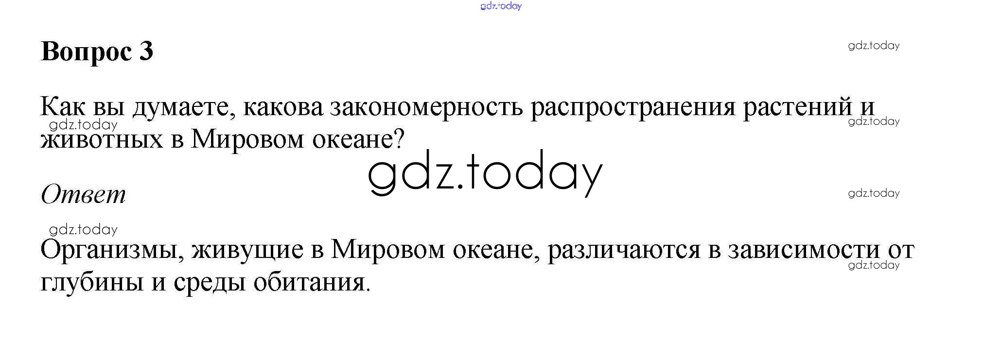 На страницах сайта gdz.today вы найдете учебный и вспомогательный материал, направленный на улучшения знаний школьной программы. ГДЗ - онлайн мир знаний Вопросы и задания §57. Закономерности распространения живых организмов на Земле 3 Учебнику по Географии для 5-6 класса Климанова, Климанов Дрофа Вертикаль 2017