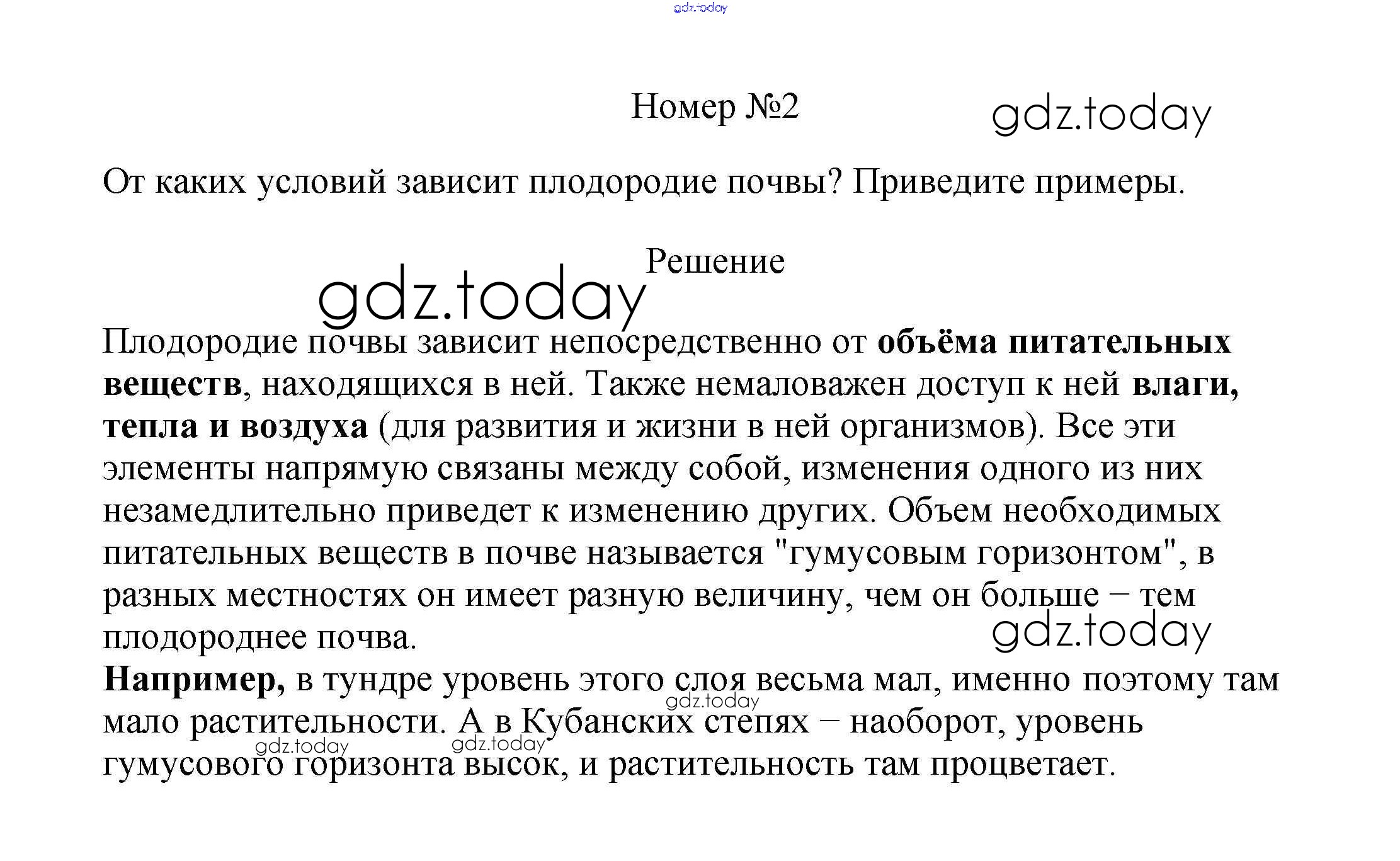 На страницах сайта gdz.today вы найдете учебный и вспомогательный материал, направленный на улучшения знаний школьной программы. ГДЗ - онлайн мир знаний Вопросы и задания §58. Почва как особое природное тело 2 Учебнику по Географии для 5-6 класса Климанова, Климанов Дрофа Вертикаль 2017