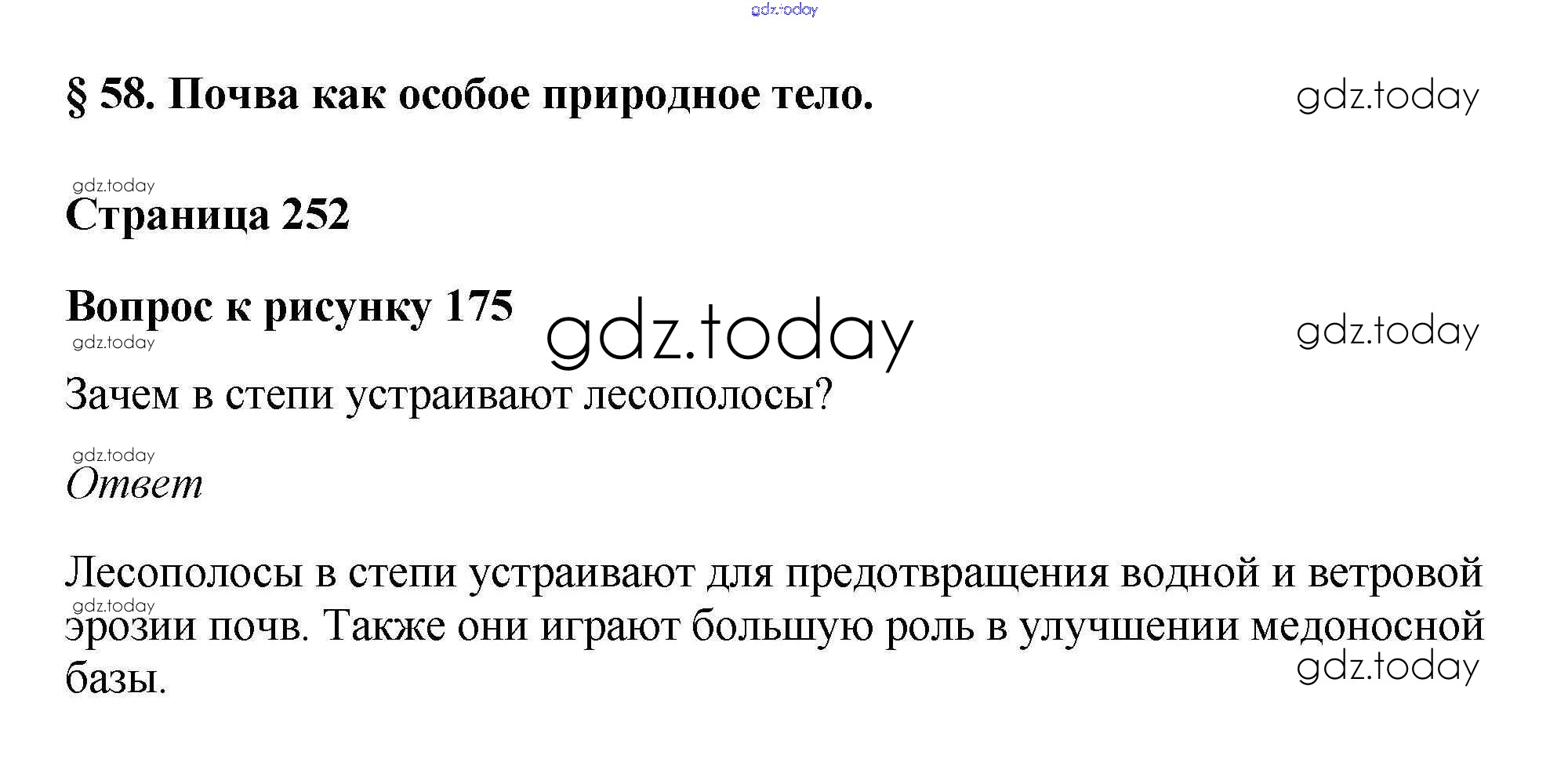 Ответы к Вопросы к рисункам §58. Почва как особое природное тело рис. 175 Учебнику по Географии для 5-6 класса Климанова, Климанов Дрофа Вертикаль 2017