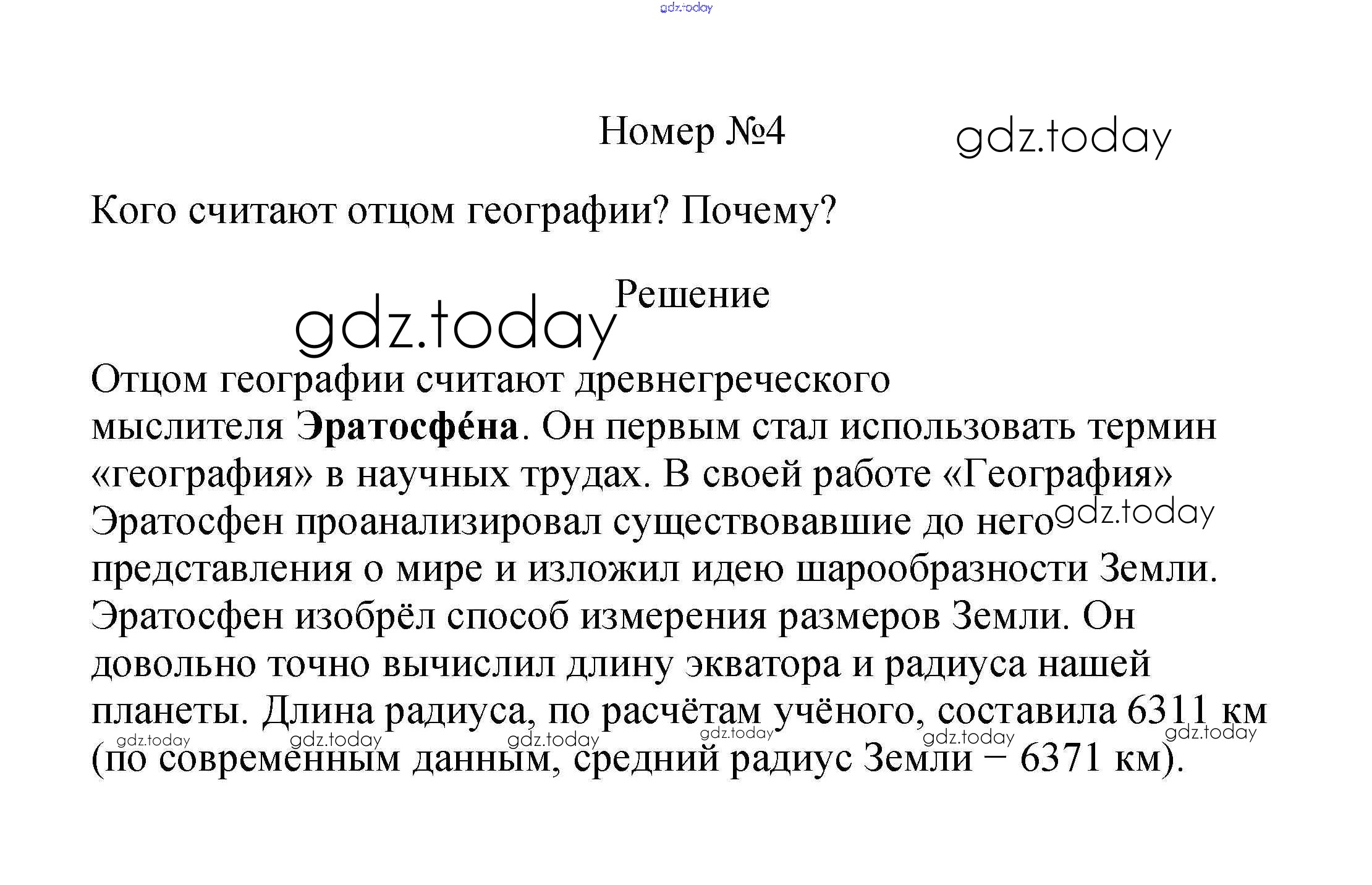На страницах сайта gdz.today вы найдете учебный и вспомогательный материал, направленный на улучшения знаний школьной программы. ГДЗ - онлайн мир знаний Вопросы и задания Решение к §2. География в древнее время 4 Учебнику по Географии для 5 класса Летягин Просвещение 2021