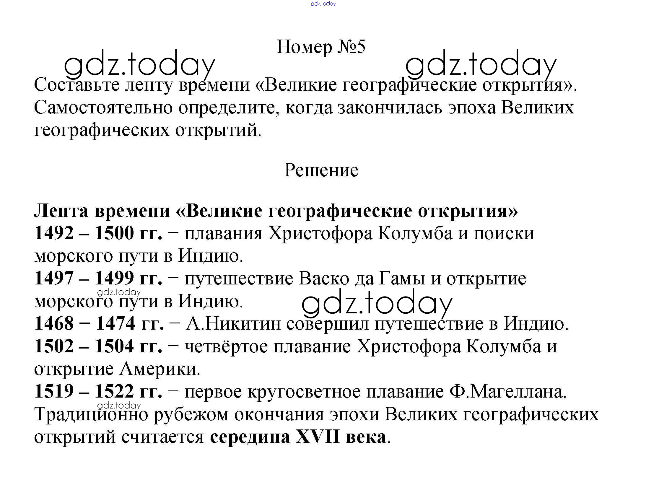 На страницах сайта gdz.today вы найдете учебный и вспомогательный материал, направленный на улучшения знаний школьной программы. ГДЗ - онлайн мир знаний Вопросы и задания Решение к §5. Великие географические открытия 5 Учебнику по Географии для 5 класса Летягин Просвещение 2021