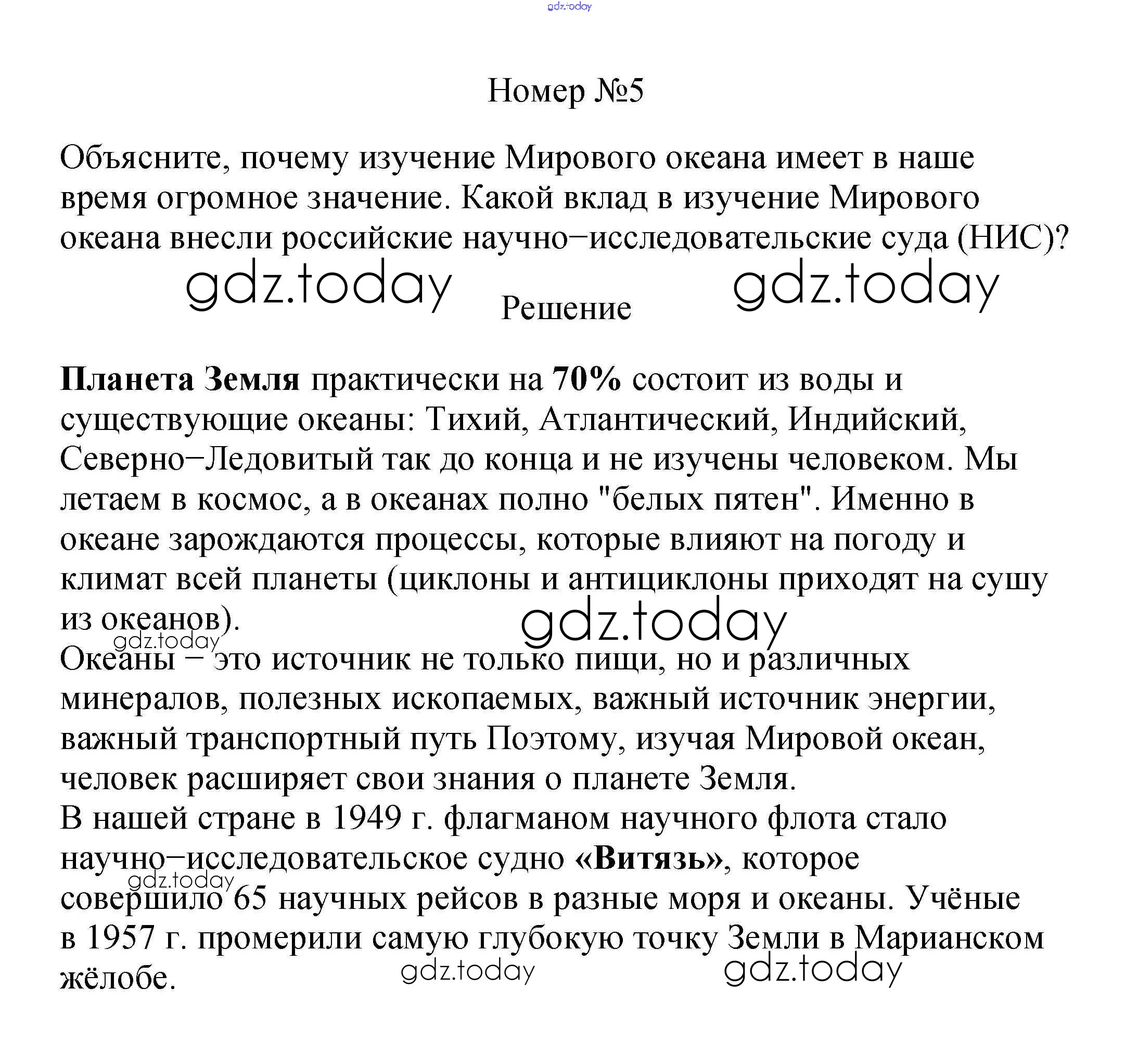 На страницах сайта gdz.today вы найдете учебный и вспомогательный материал, направленный на улучшения знаний школьной программы. ГДЗ - онлайн мир знаний Вопросы и задания Решение к §7. Современные географические исследования 5 Учебнику по Географии для 5 класса Летягин Просвещение 2021
