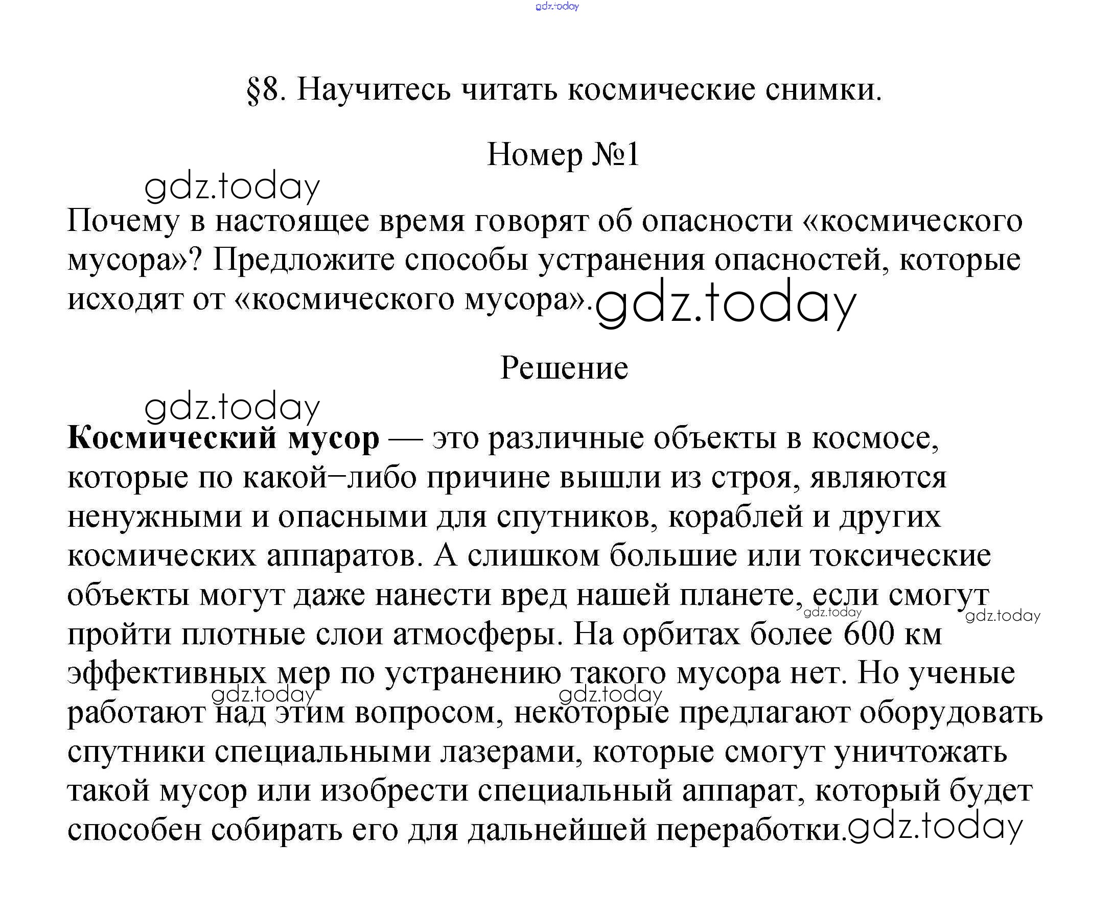 На страницах сайта gdz.today вы найдете учебный и вспомогательный материал, направленный на улучшения знаний школьной программы. ГДЗ - онлайн мир знаний Научитесь читать космические снимки Решение к §8. Современные географические исследования. Взгляд на Землю из космоса 1 Учебнику по Географии для 5 класса Летягин Просвещение 2021