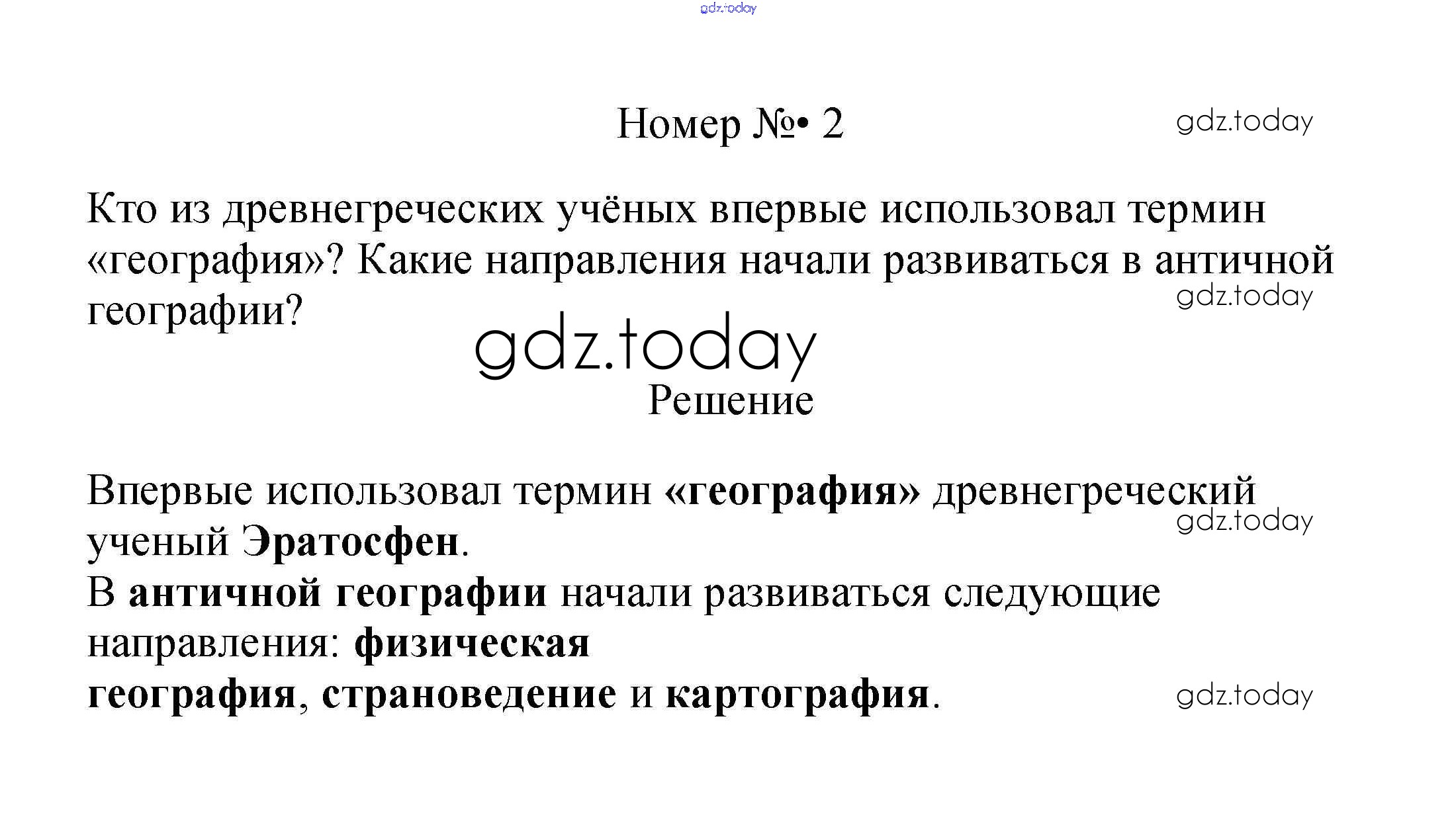 На страницах сайта gdz.today вы найдете учебный и вспомогательный материал, направленный на улучшения знаний школьной программы. ГДЗ - онлайн мир знаний Решение к вопросам и заданиям для повторения и обобщения Раздел 1 2 Учебнику по Географии для 5 класса Летягин Просвещение 2021