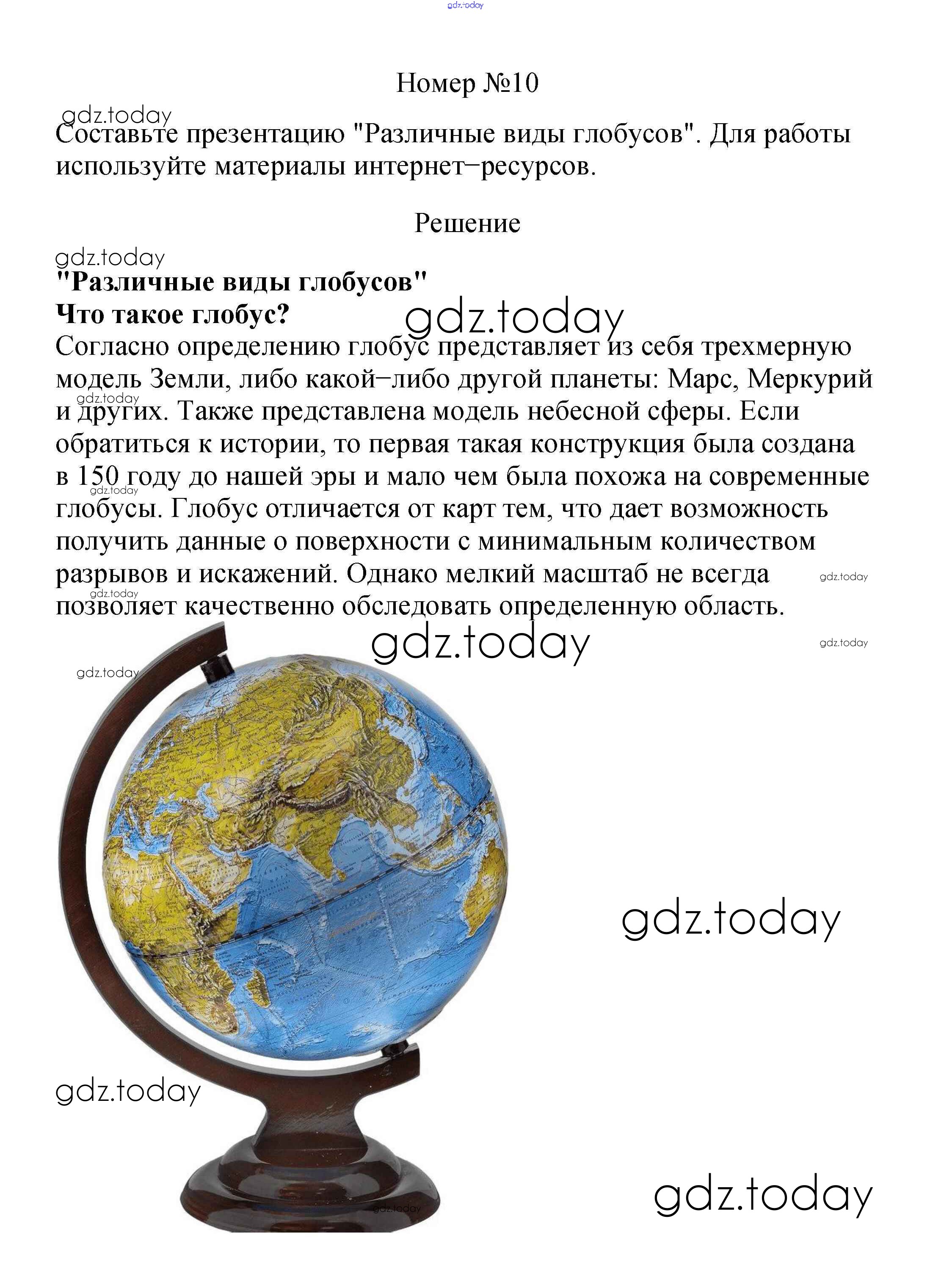 На страницах сайта gdz.today вы найдете учебный и вспомогательный материал, направленный на улучшения знаний школьной программы. ГДЗ - онлайн мир знаний Вопросы и задания Решение к §15. Глобус — модель Земли 10 Учебнику по Географии для 5 класса Летягин Просвещение 2021