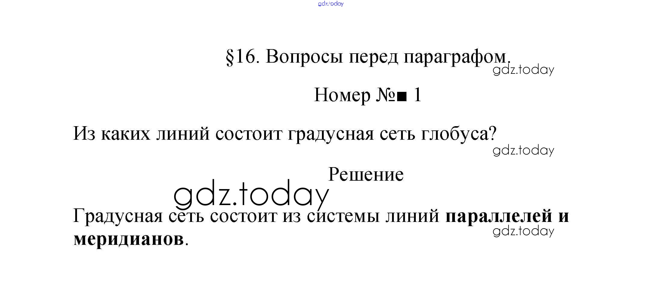 На страницах сайта gdz.today вы найдете учебный и вспомогательный материал, направленный на улучшения знаний школьной программы. ГДЗ - онлайн мир знаний Вопросы перед параграфом Решение к §16. Географические координаты 1 Учебнику по Географии для 5 класса Летягин Просвещение 2021