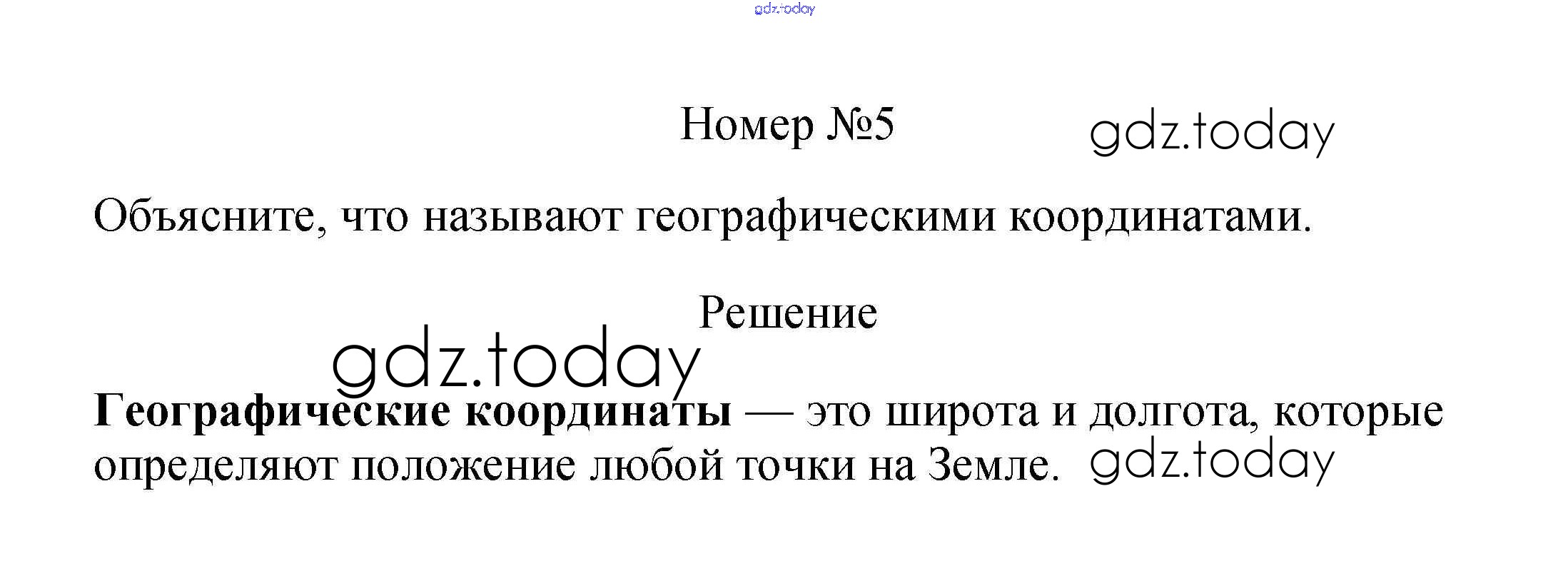 На страницах сайта gdz.today вы найдете учебный и вспомогательный материал, направленный на улучшения знаний школьной программы. ГДЗ - онлайн мир знаний Вопросы и задания Решение к §16. Географические координаты 5 Учебнику по Географии для 5 класса Летягин Просвещение 2021